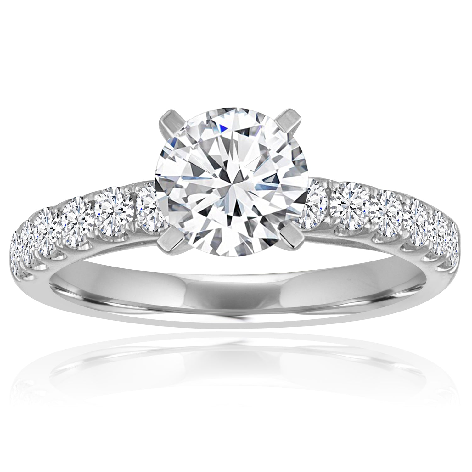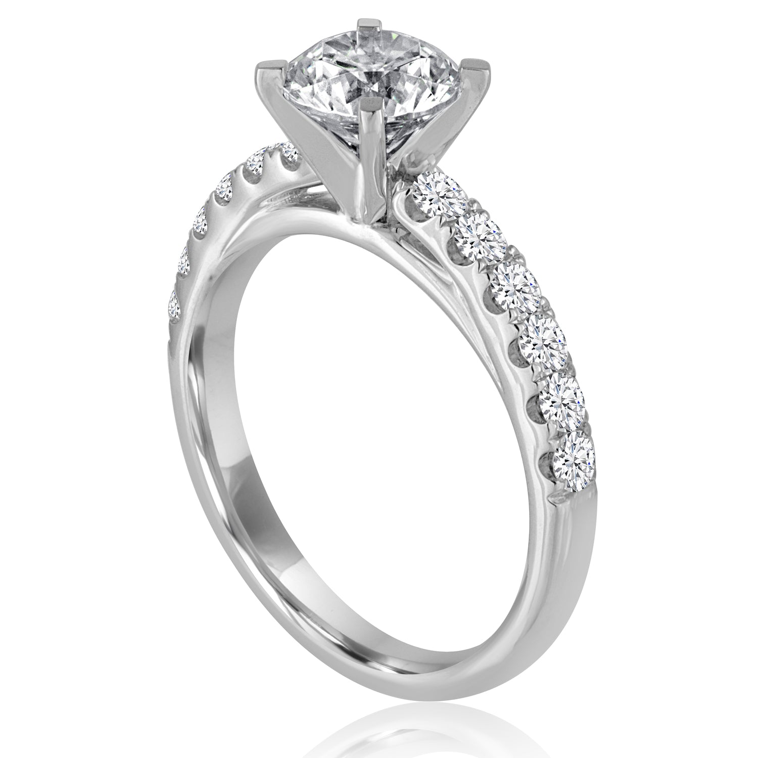 18 Karat white gold 0.75ctw diamond 'J,MONALI' split prong cathedral setting engagement ring. Also available in Platinum, Rose Gold, or Yellow Gold. Can accommodate different diamond cuts, available by special order. Does not include center stone.