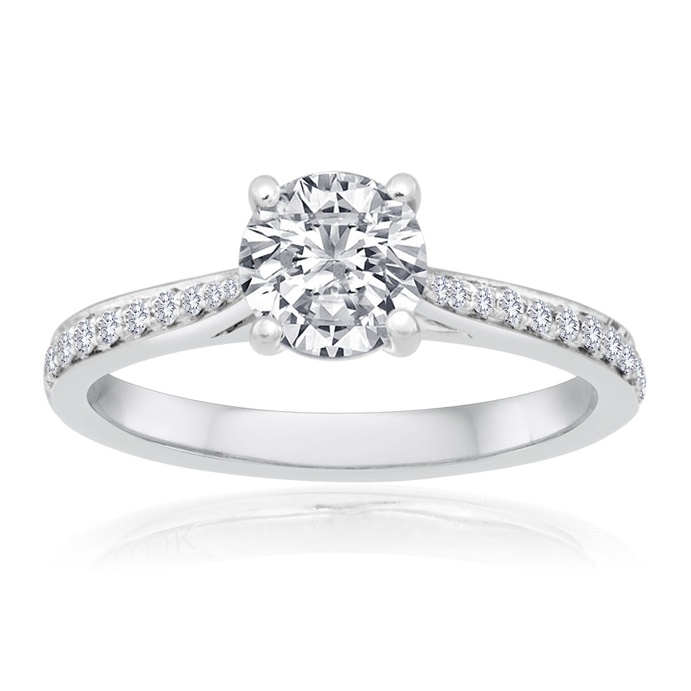 'J Monali' 14Kt White Gold 0.75 Ctw Round Cut Diamond Pave Set Semi-Mount Engagement Ring, Sz 6 Also available in Platinum, Rose Gold, or Yellow Gold. Can accommodate different diamond cuts, available by special order. Does not include center stone.