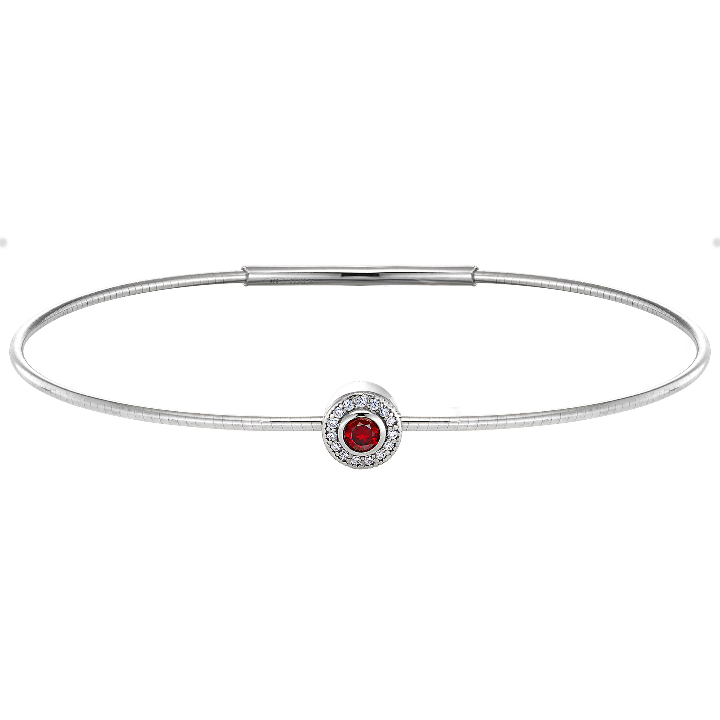 Sterling silver platinum finish micropave simulated garnet birth gem bracelet with simulated diamonds