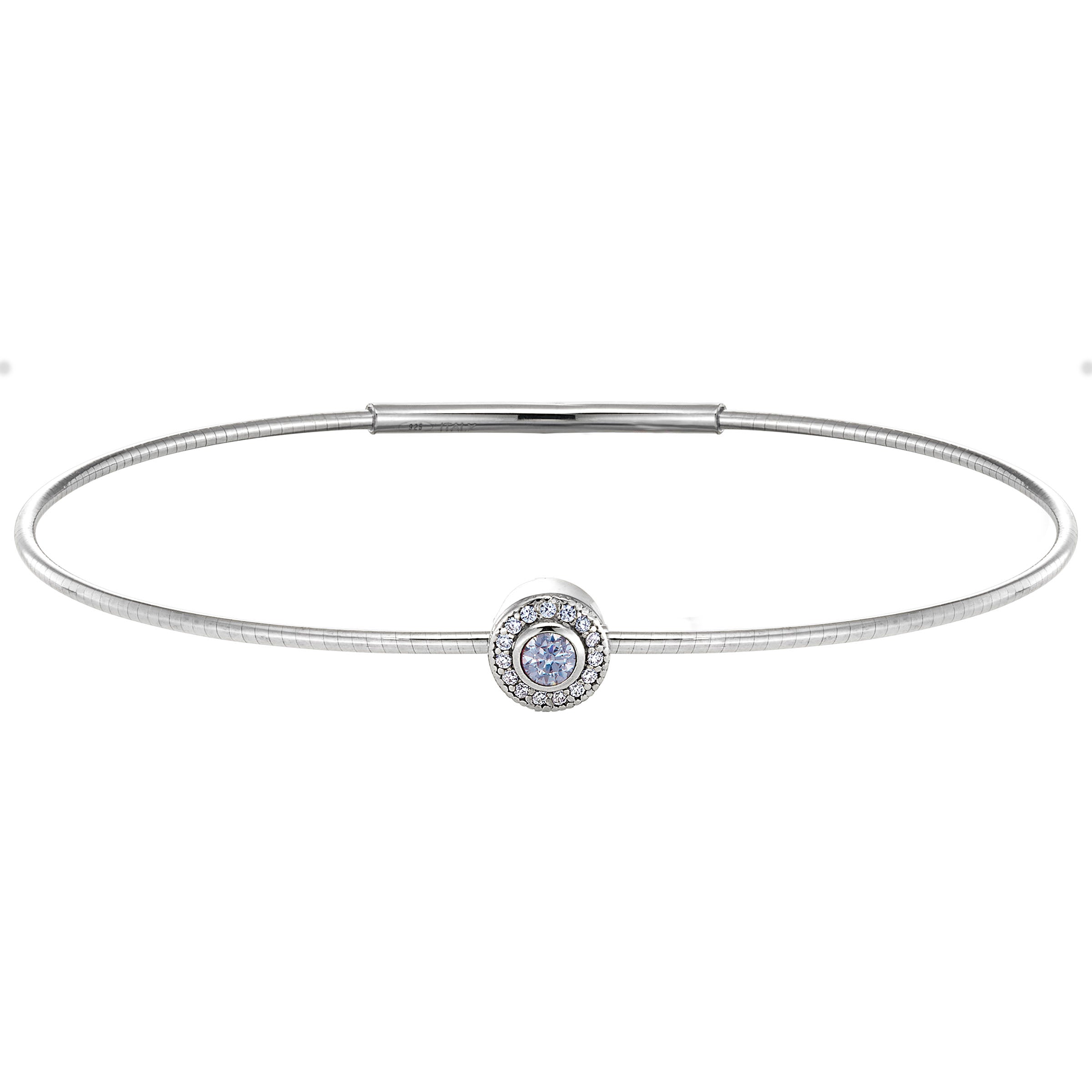 Sterling silver platinum finish micropave round simulated light amethyst birth gem bracelet with simulated diamonds