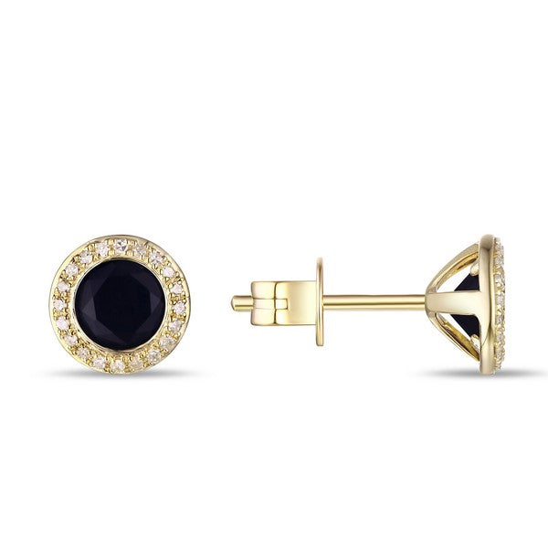 14KT YG 0.11 CTW DIAMOND AND 1.10 CTW BLACK ONYX BEZEL-SET STUD EARRINGS 225 / E01482-BLOX.Y