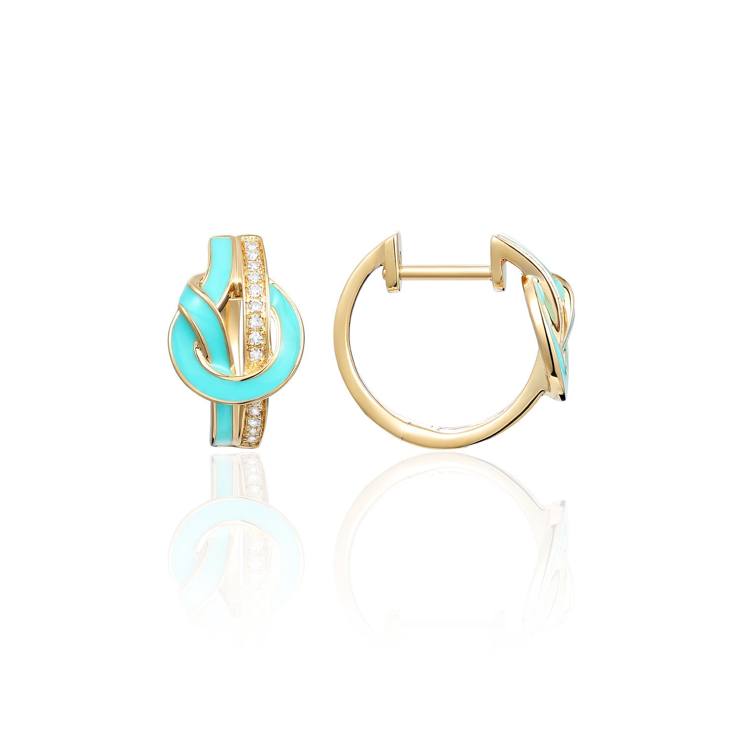 14 Karat Yellow Gold 0.08ctw Diamond & Turquoise Enamel Hoop Earrings. 225/E04368-TRQ.Y