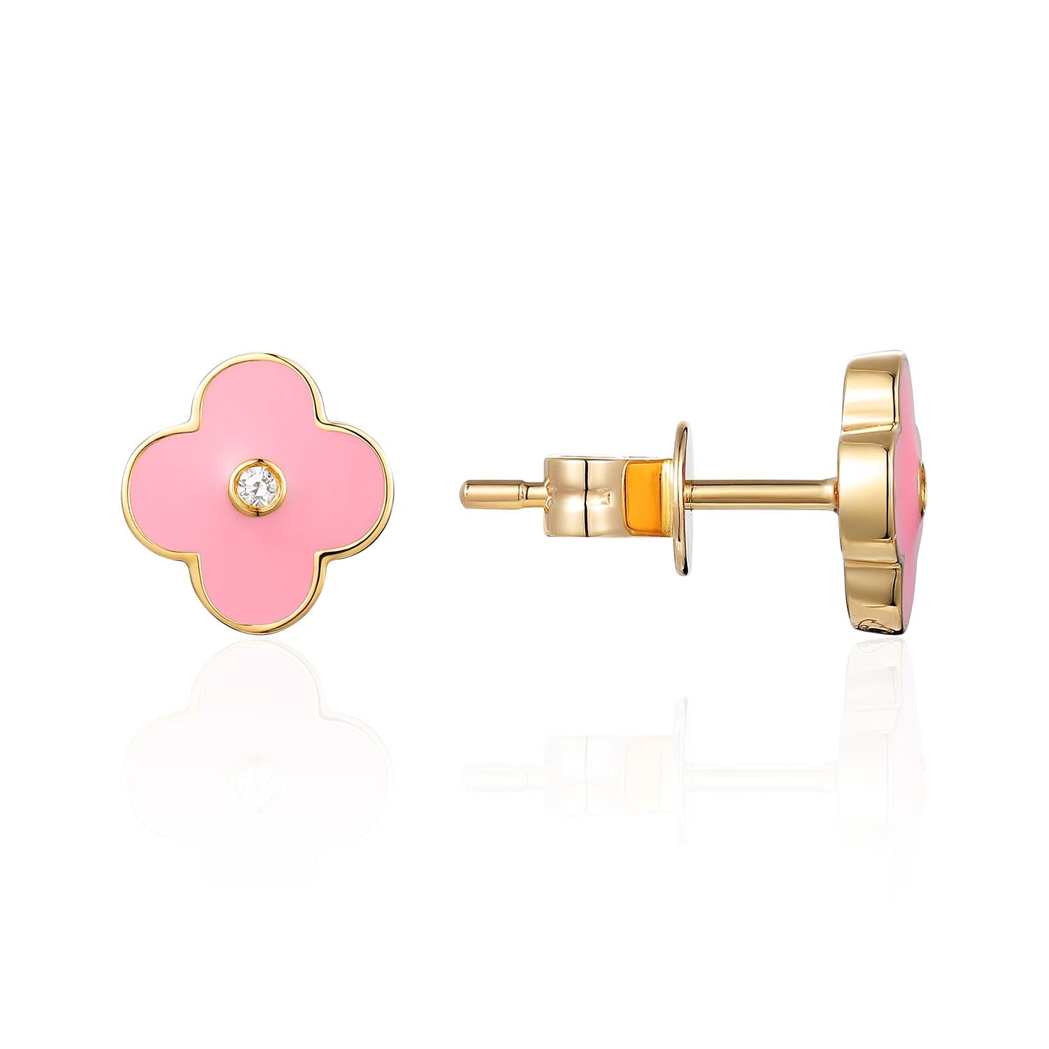 14K Yellow Gold 0.02ctw Diamond and Pink Enamel Flower Stud Earrings Vendor ID: 225/Vendor Style #: E04439-PINK.Y