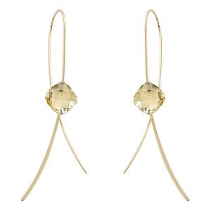 14KT YG SWEEP W/100MM CUSHION CUT CITRINE LADIES' FASHION EARRINGS. 173 / 316900CI