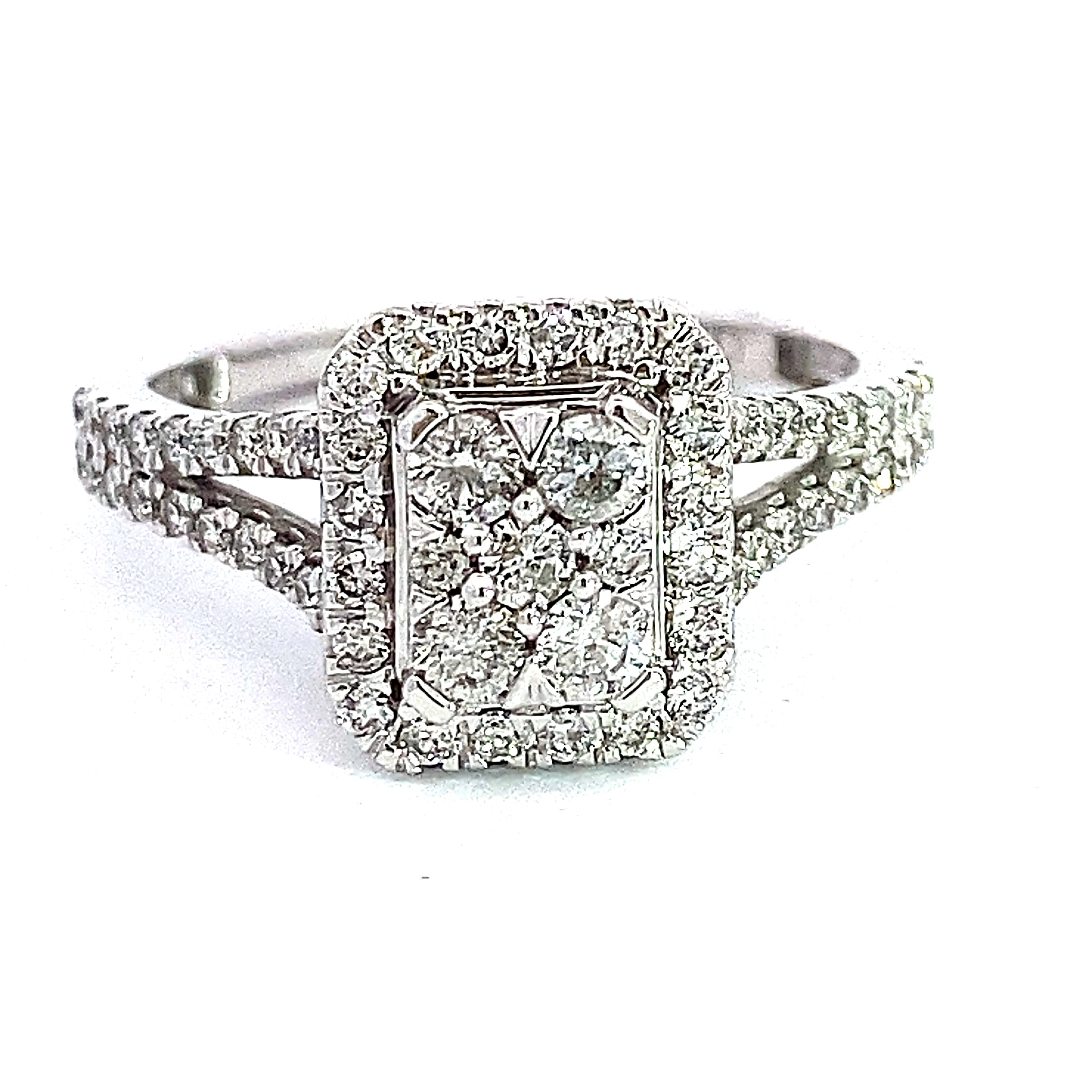 14K White Gold 0.75ctw Diamond Engagement Ring Rectangular Cluster Finger Size 7