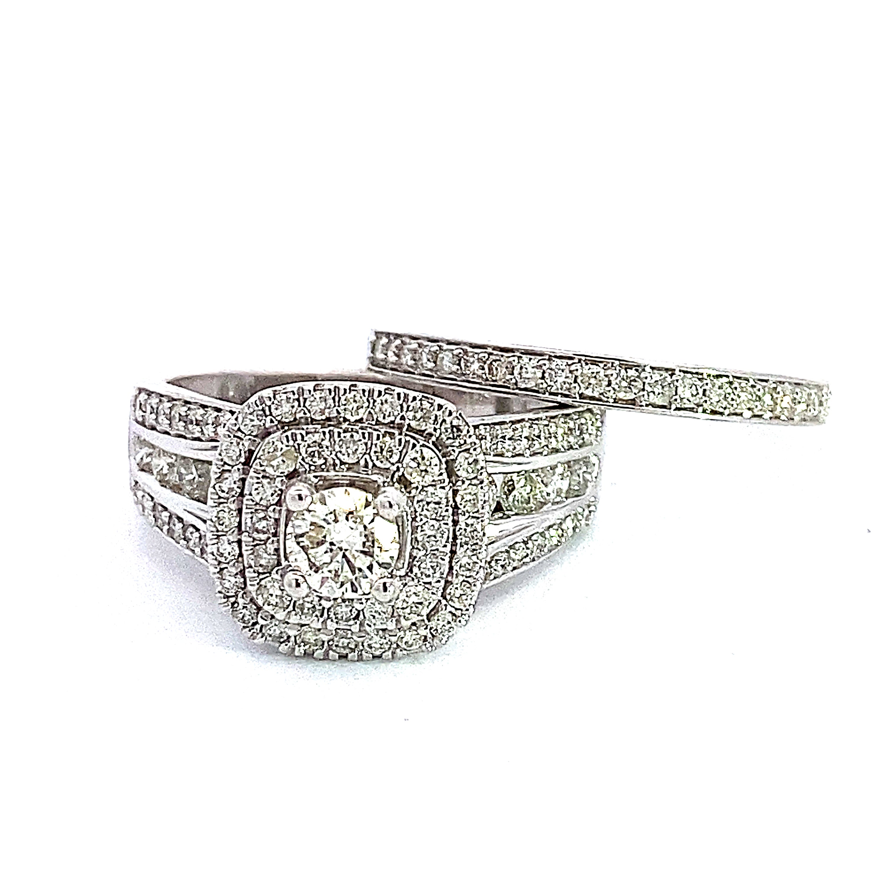 10K White Gold 1.25ctw Wedding Set Center 1/3ct Round Double Halo Finger SIze 7