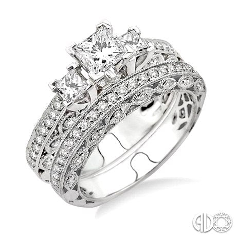 14KW 7/8CTW DIAMOND VINTAGE THREE STONE STYLE ENGAGEMENT RING ONLY