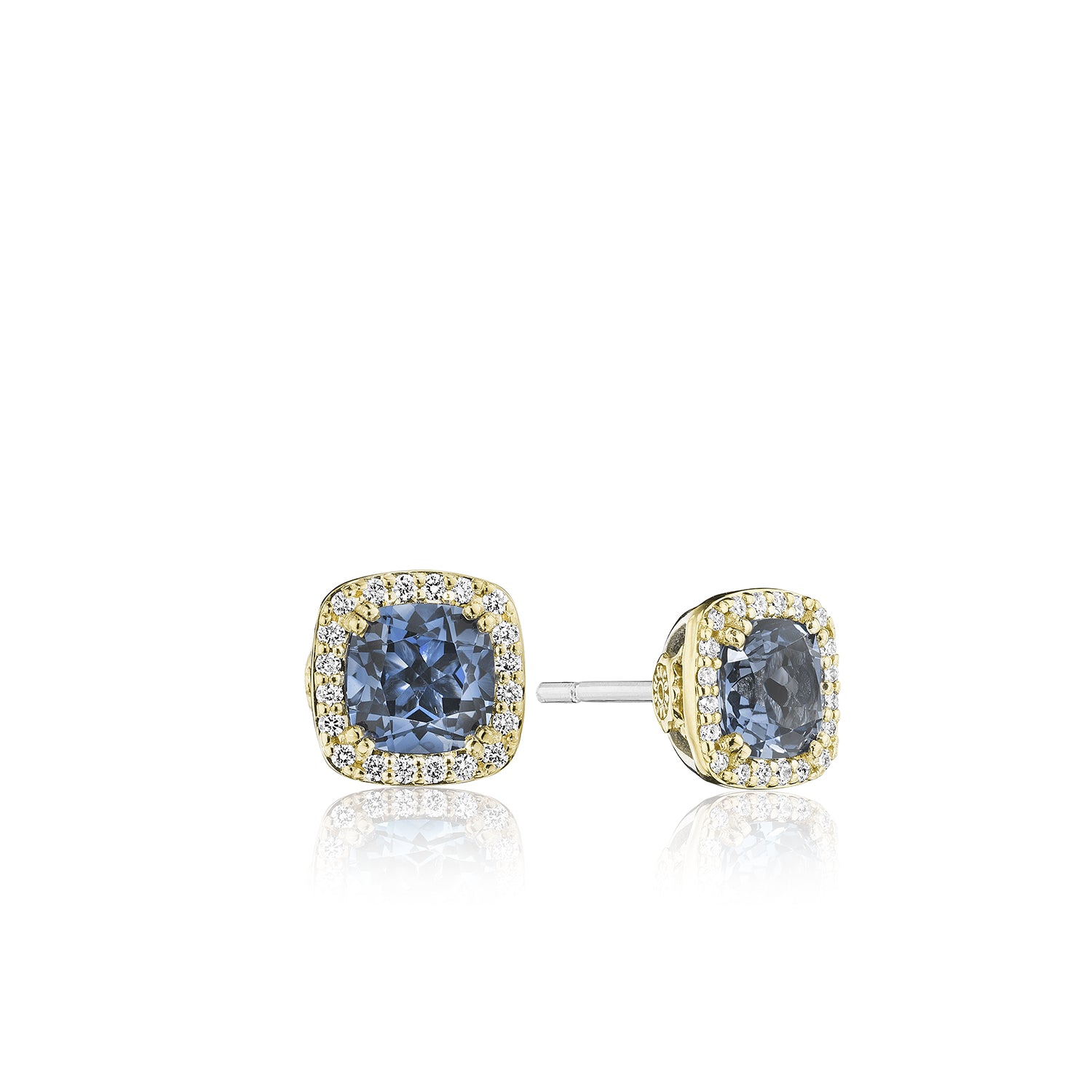 Silver 18kt Yellow Gold 0.12ctw Cushion London Blue Stud Earring. 159/SE244Y33