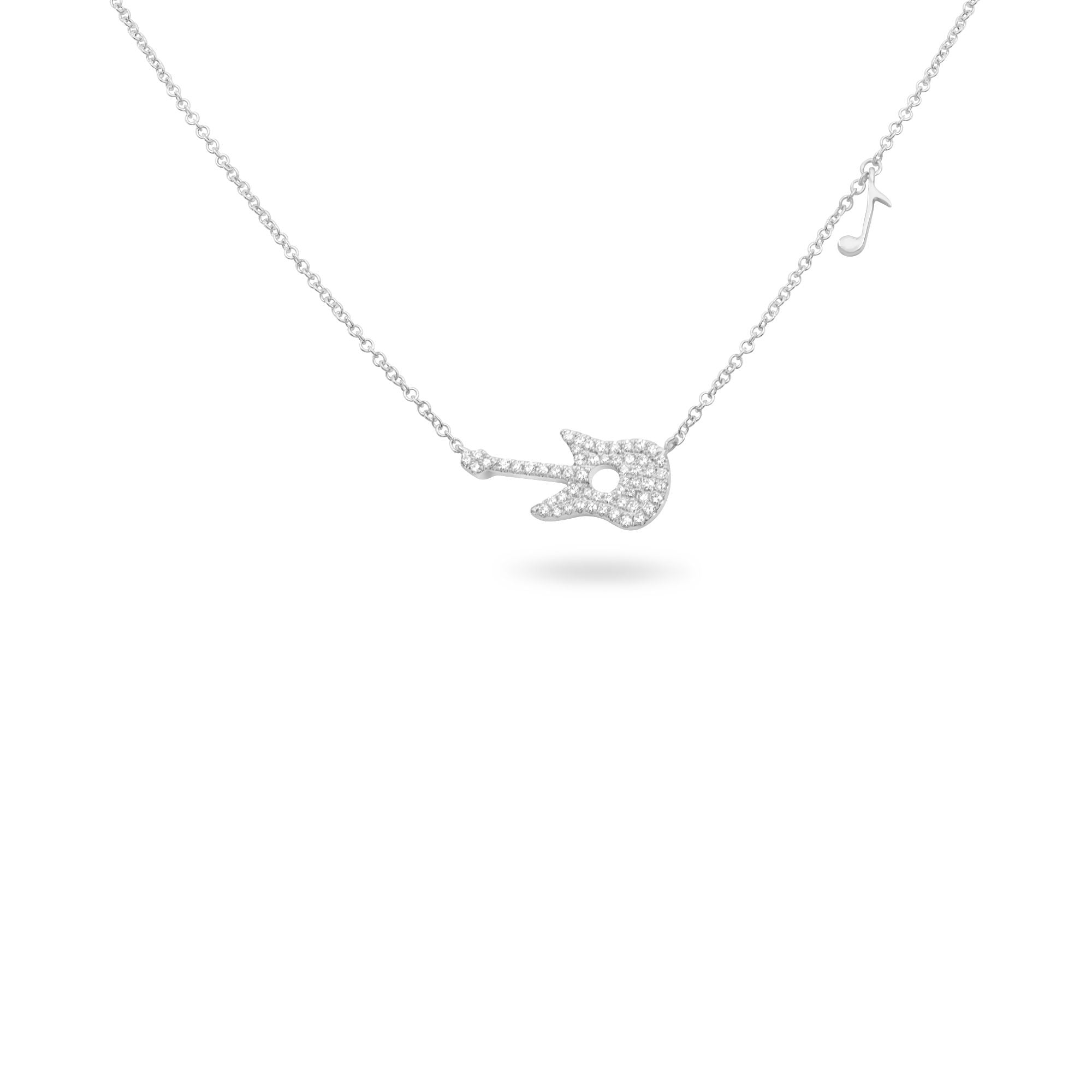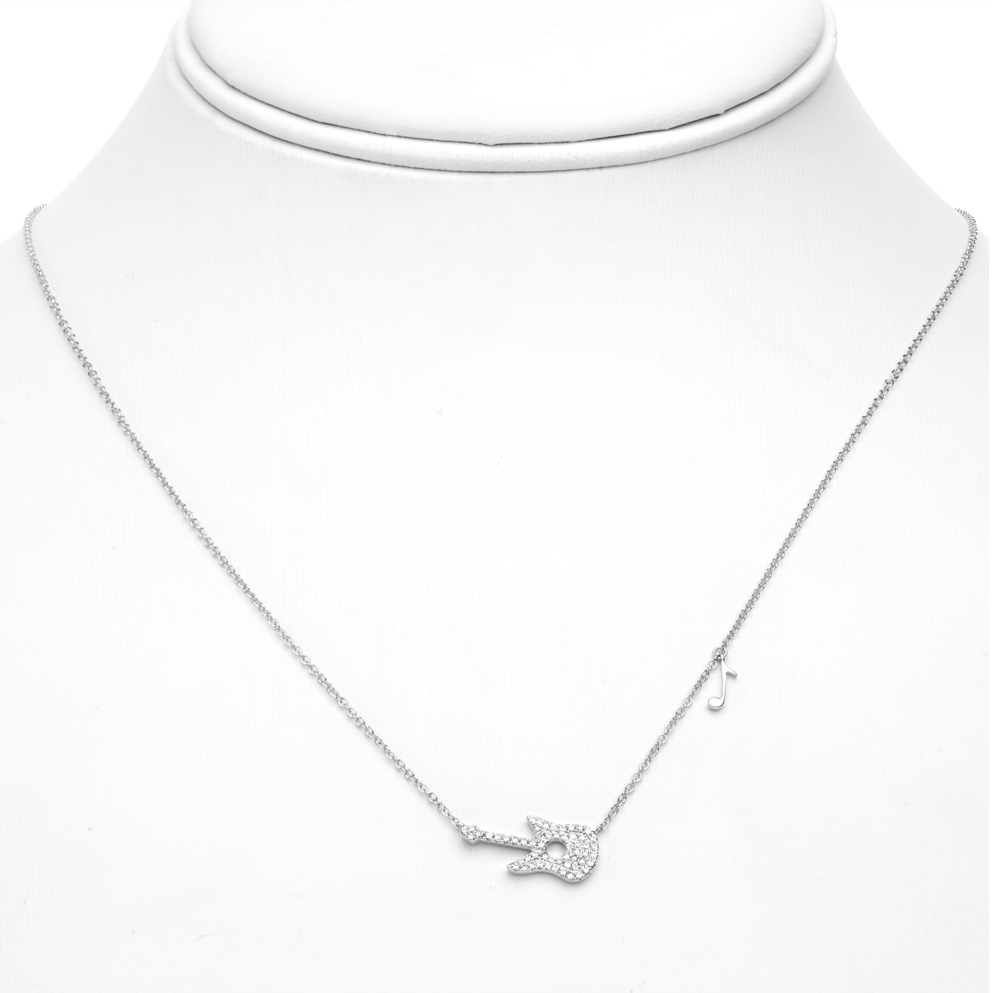 Lady's White Gold 14 Karat 0.15ctw Diamond Guitar Necklace Length 18" adjustable