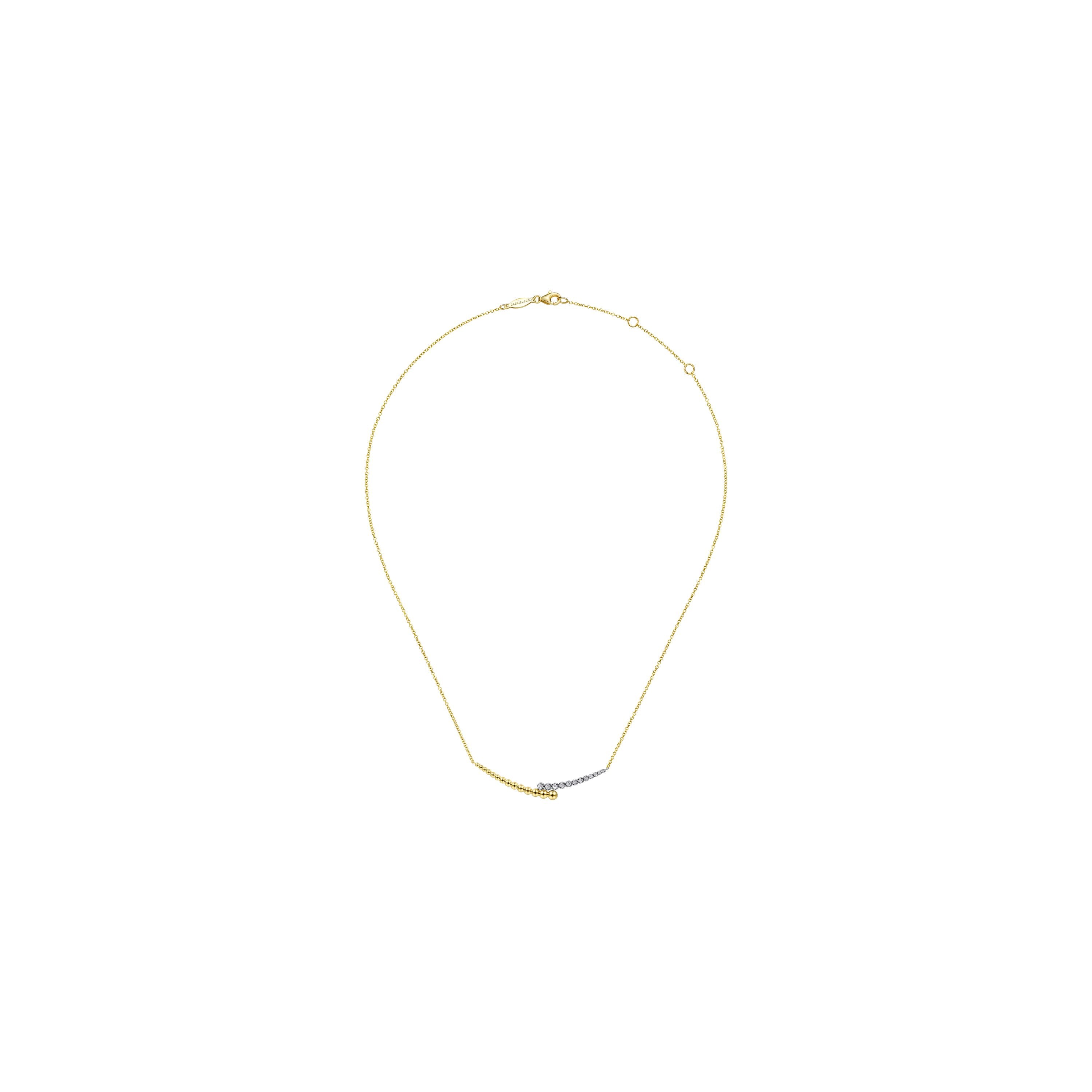 14K Yellow/White Gold 0.18ctw Diamond Pave and Bujukan Bead Curved Bar Necklace Serial No. S1625012