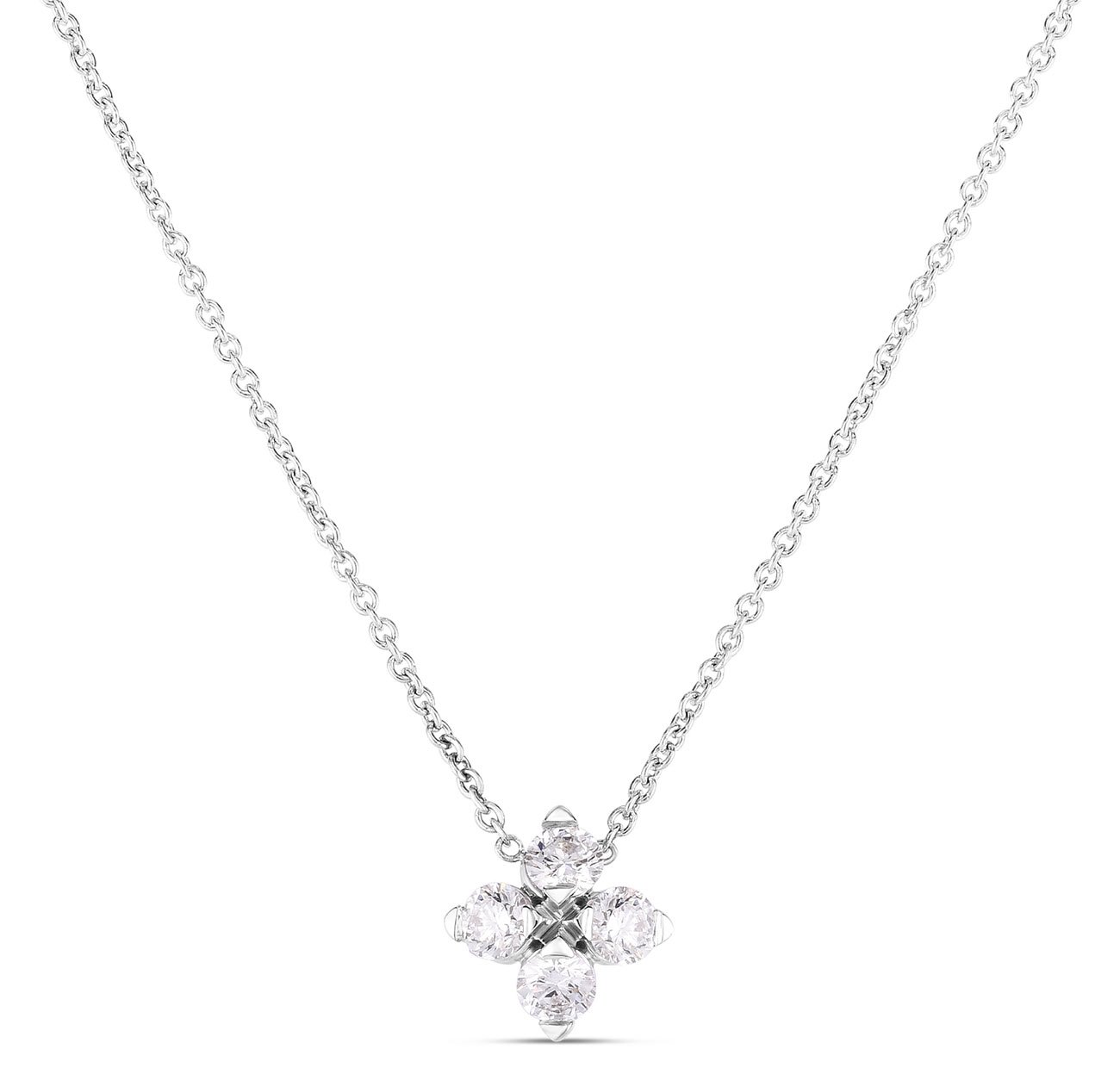 18K White Gold Love in Verona 0.27ctw Diamond Small Flower Necklace 16-18"