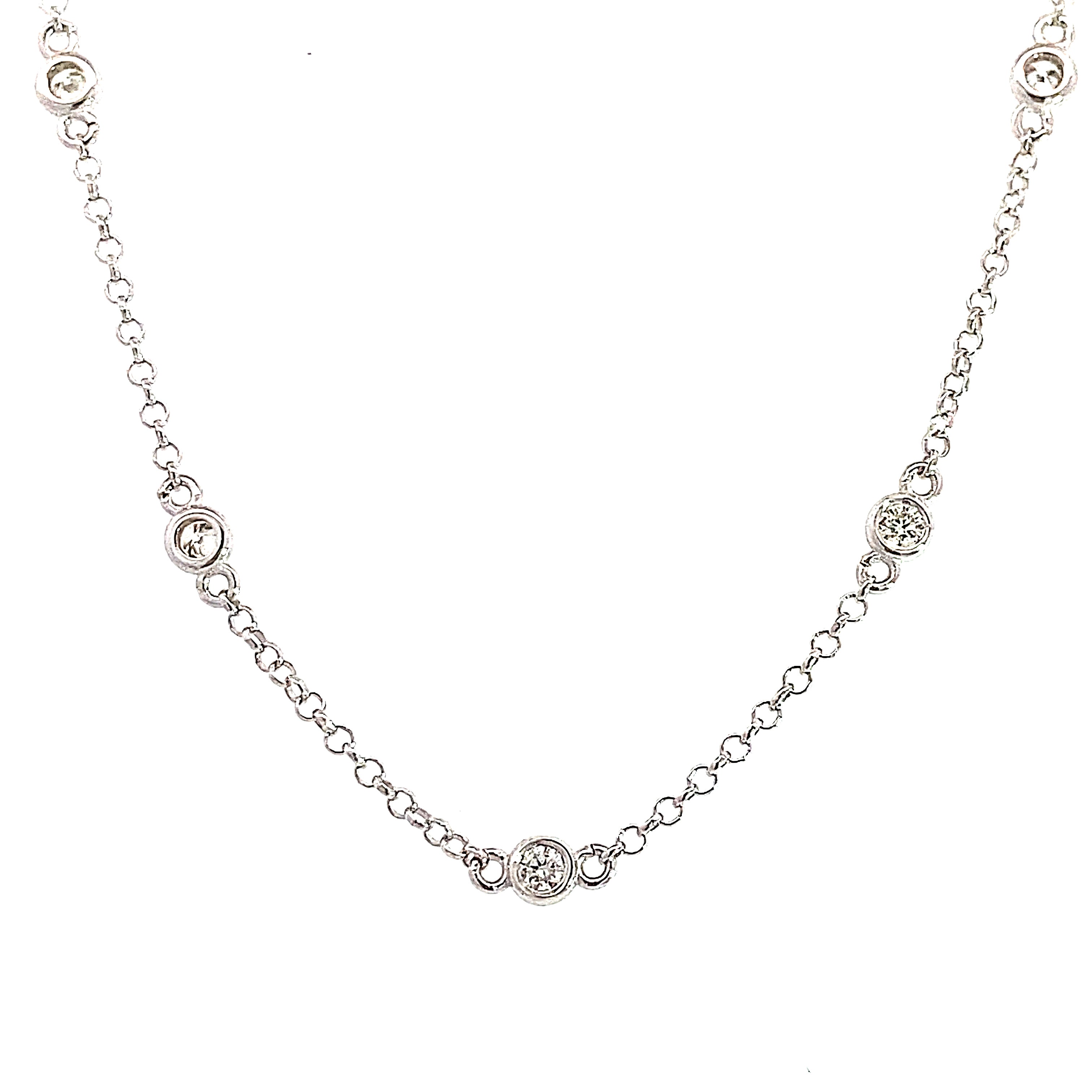 14K White Gold 0.62ctw Diamond Station Necklace 20"-18"16" Adjustable