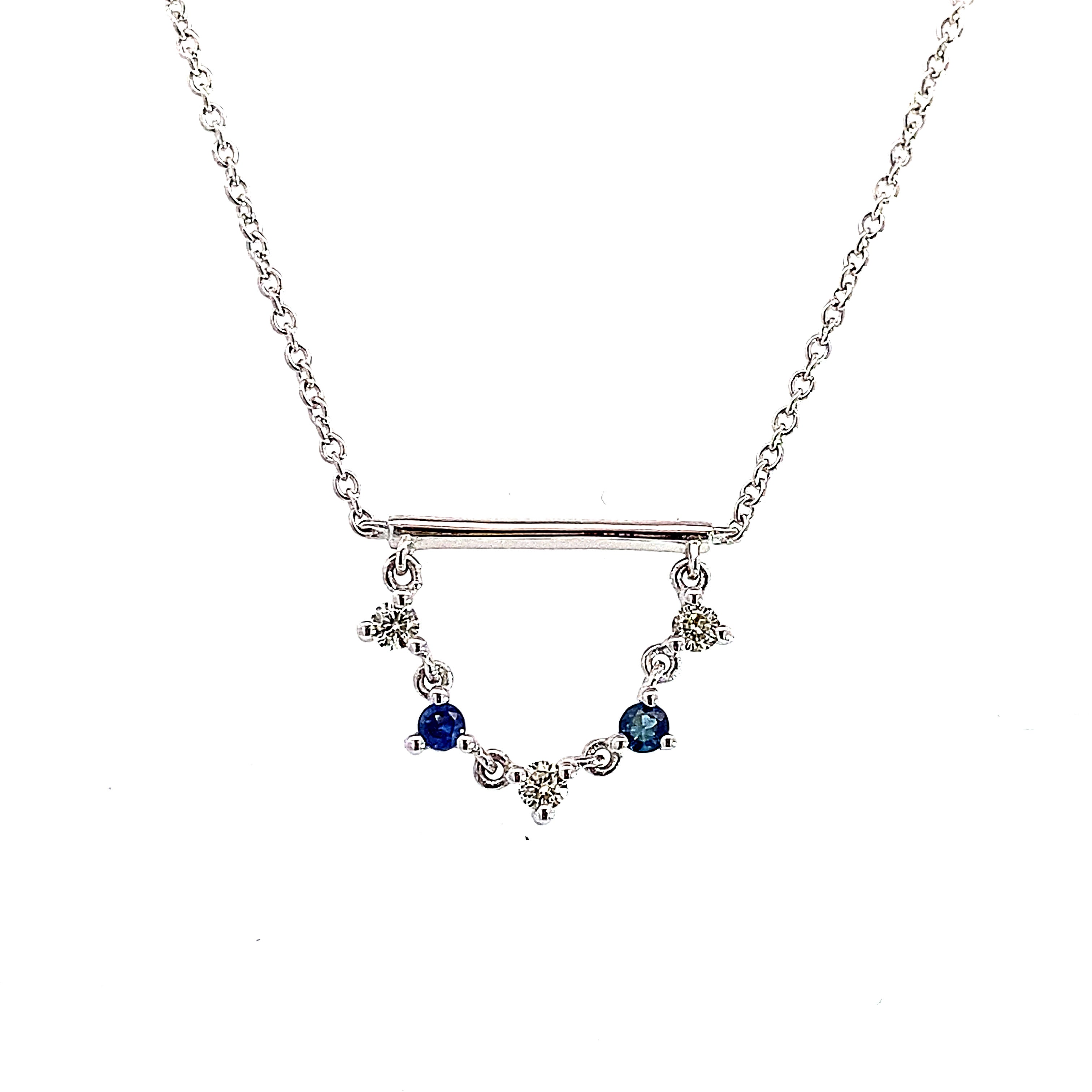 14K White Gold 0.10ctw Diamond and 0.09ctw Sapphire Necklace16"/18" Adjustable