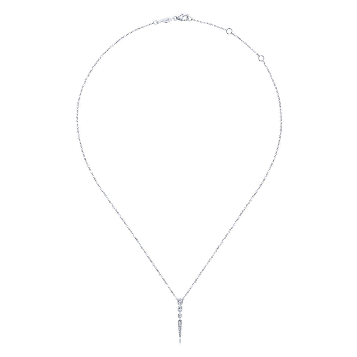 14K White Gold 0.33ctw Diamond Spike Pendant Drop Necklace "Kaslique Collection" 17.5" Length Adjustable Serial # S1768353