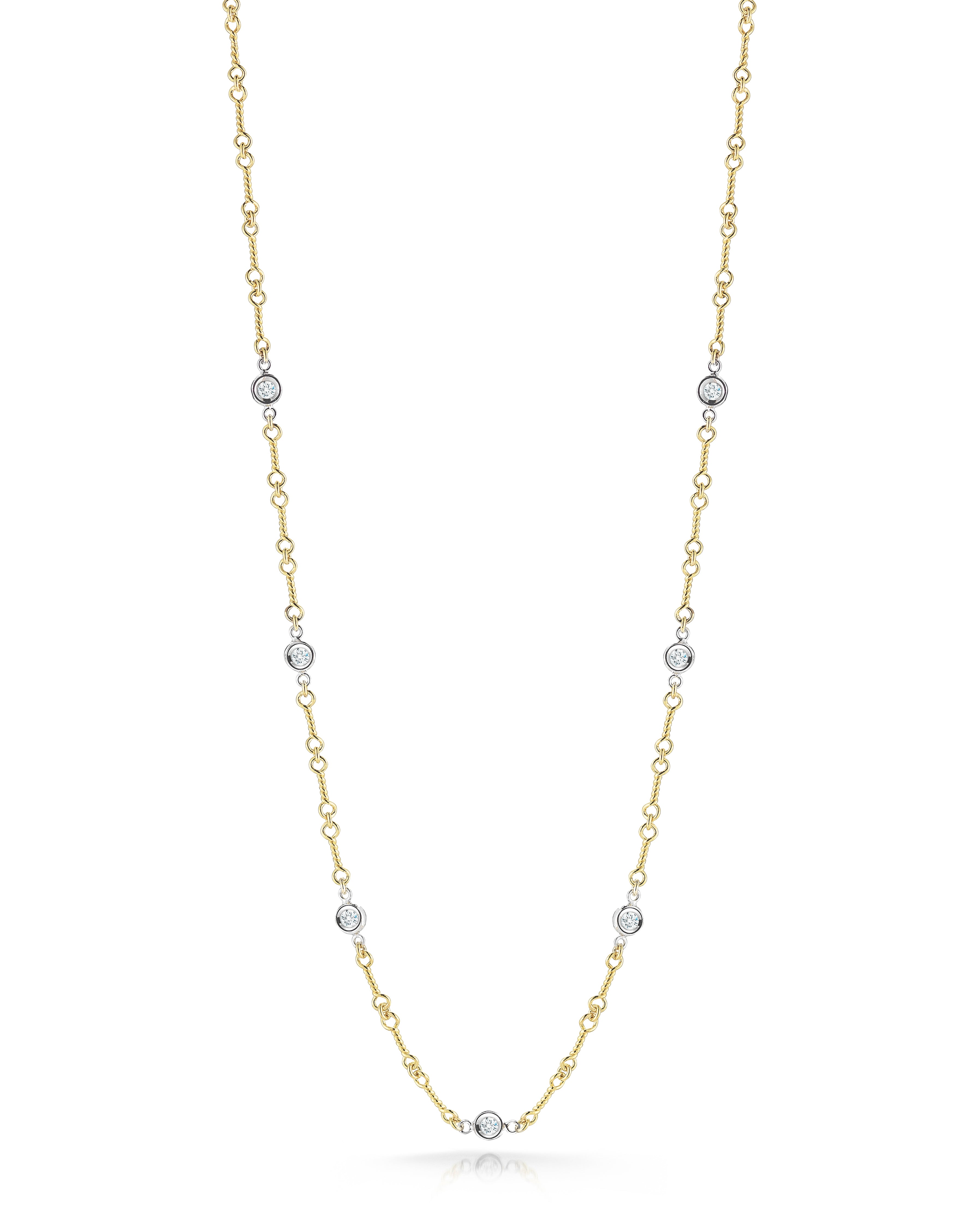18K Yellow Gold & White Gold 0.28ctw Diamond Roberto Coin Station Necklace 18" length. 256/001824AJ18X0