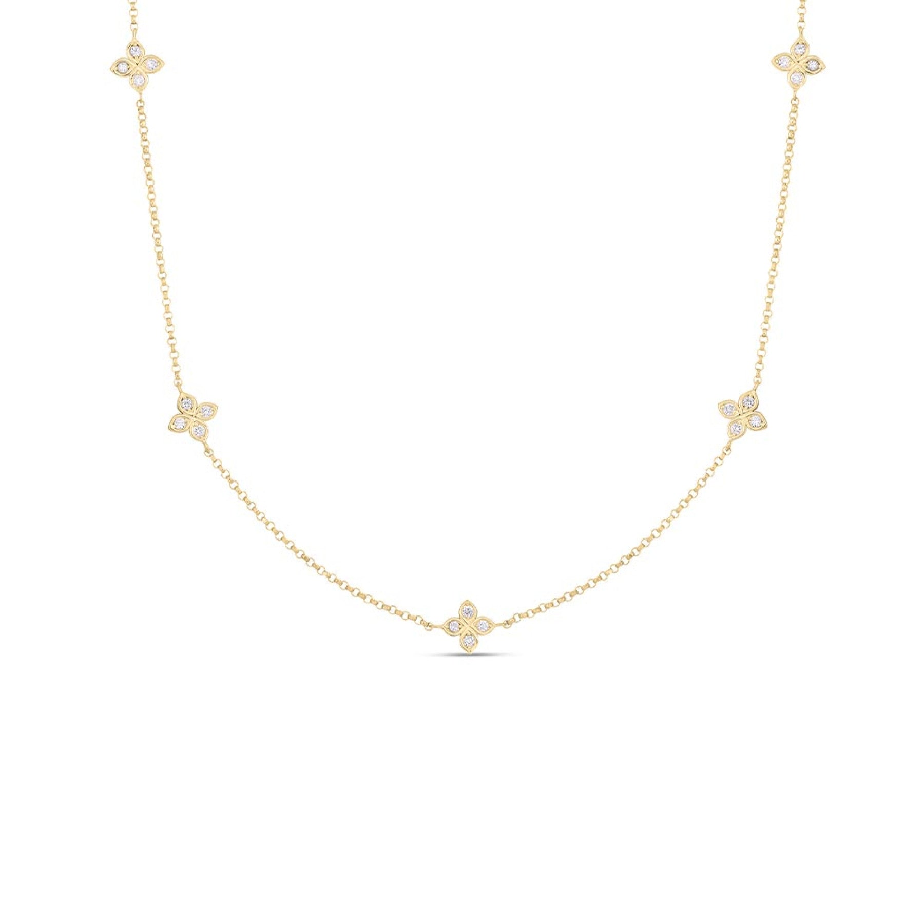 18K Yellow Gold 0.22ctw Diamond Love by the Inch 5 Station Necklace adjustable 15" - 18"