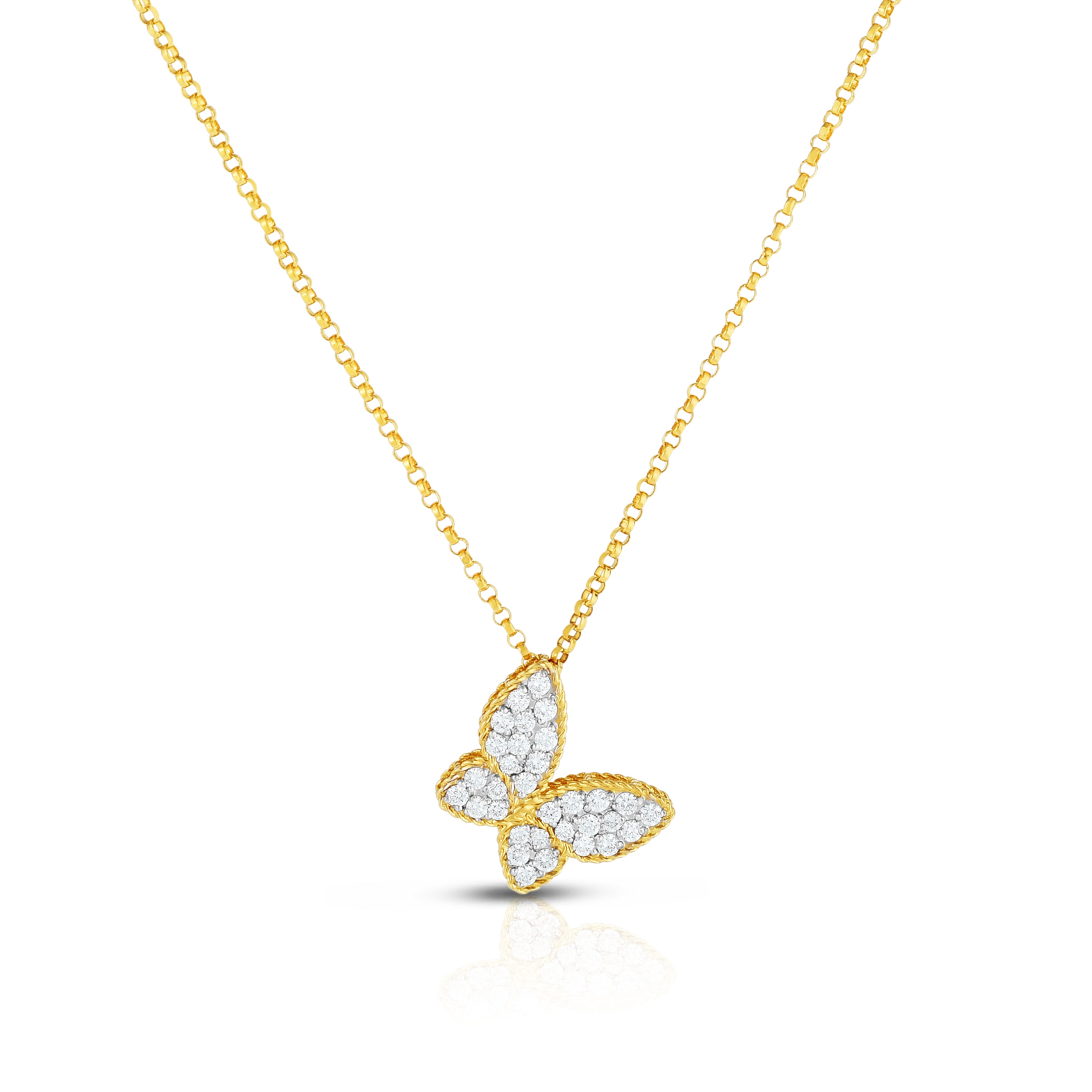 18K YELLOW GOLD DIAMOND PRINCESS BUTTERFLY 0.25ctw PENDANT, CHAIN INCLUDED