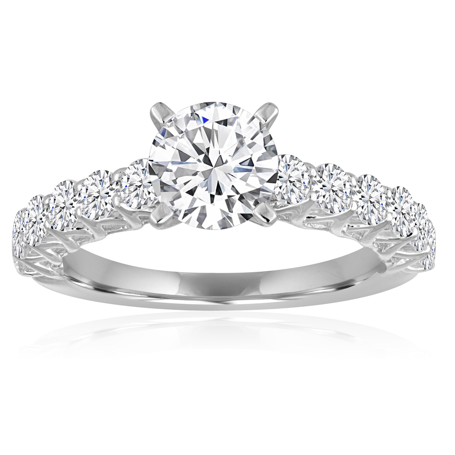 18 Karat white gold 0.25cta diamond 'J.MONALI' trellis setting engagement ring. Also available in Platinum, Rose Gold, or Yellow Gold. Can accommodate different diamond cuts, available by special order. Does not include center stone.
