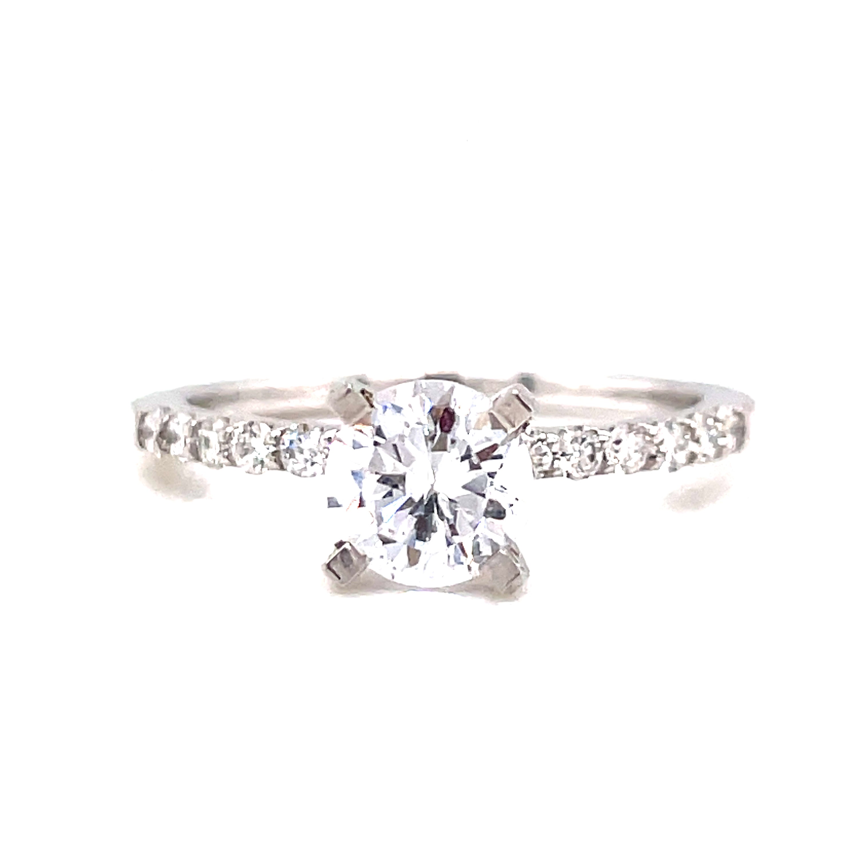 14 KARAT WHITE GOLD 0.25 CARAT TW ROUND CUT PRONG-SET SEMI-MOUNT ENGAGEMENT RING, FINGER SIZE 7 HOLDS 1CT ROUND CENTER STONE. 31 / 26926FCWG-SM-DH