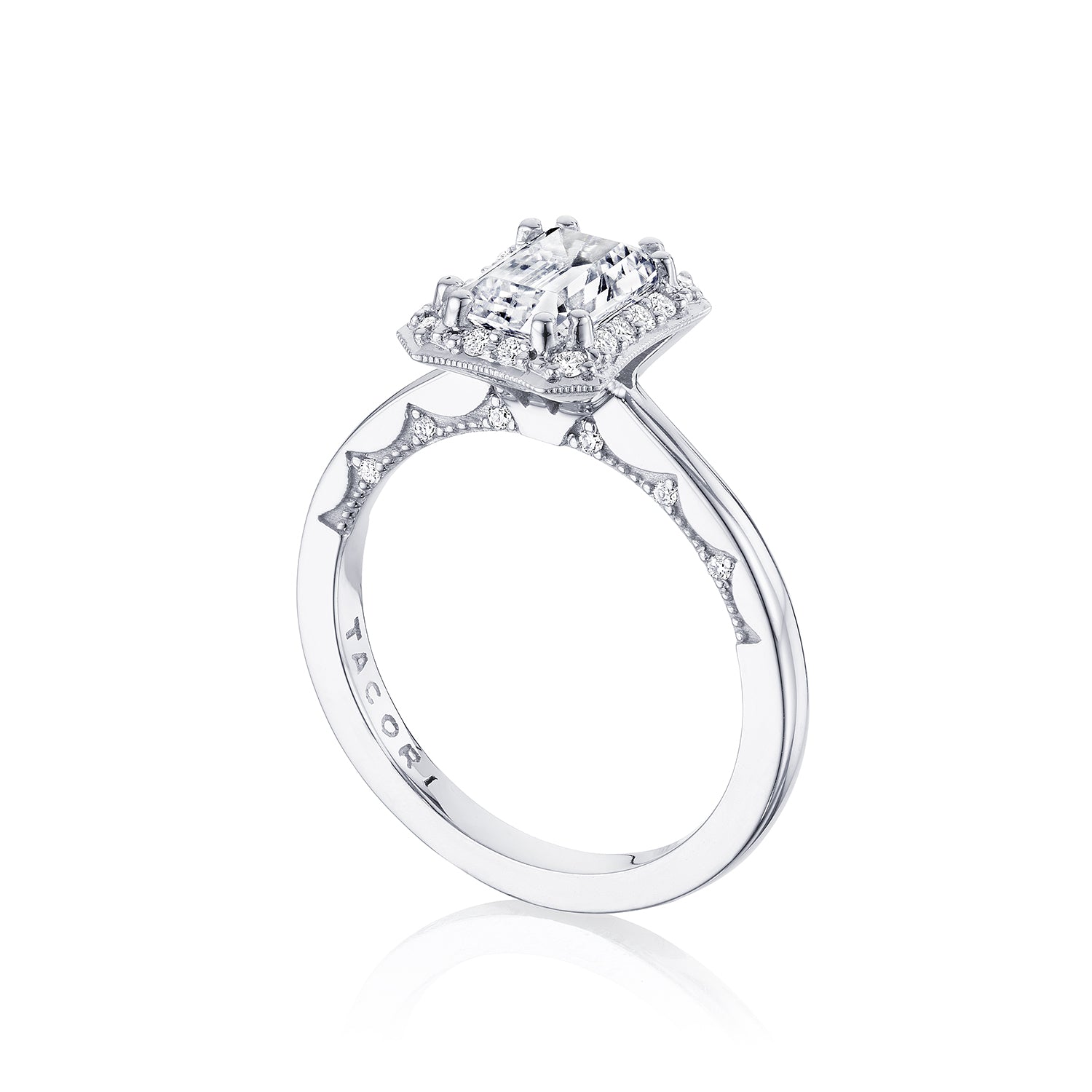 TACORI 14 Karat White Gold 0.16 Carat Total Diamond Semi-Mount Engagement Ring, Solid Bottom, Finger Size 6.5 Head Measures 7.0 x 5.0 Mm to Hold an Emeraldl Cut Centerstone (CZ) Serial No.398548 159 / P101 EC 7X5 FW