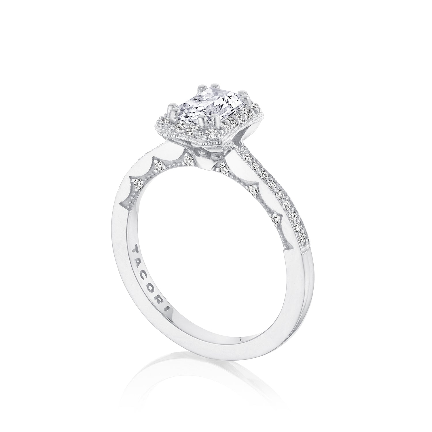 TACORI 14 Karat White Gold 0.25 Carat Total Diamond Semi-Mount Engagement Ring, Halo Style, Solid Bottom, Finger Size 6.5 Head Measures 7.5 x 5.5 Mm to Hold an Emerald Cut Centerstone (CZ) Serial No. 398552 159 / P103 EC 7.5X5.5 FW