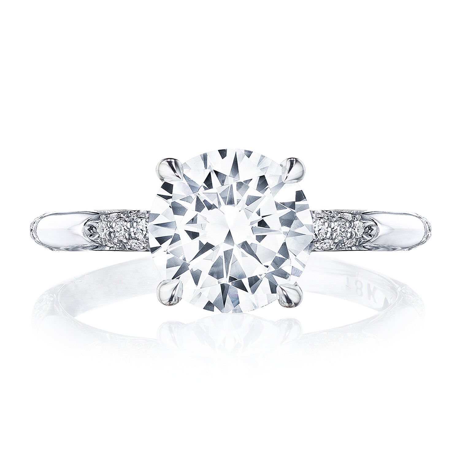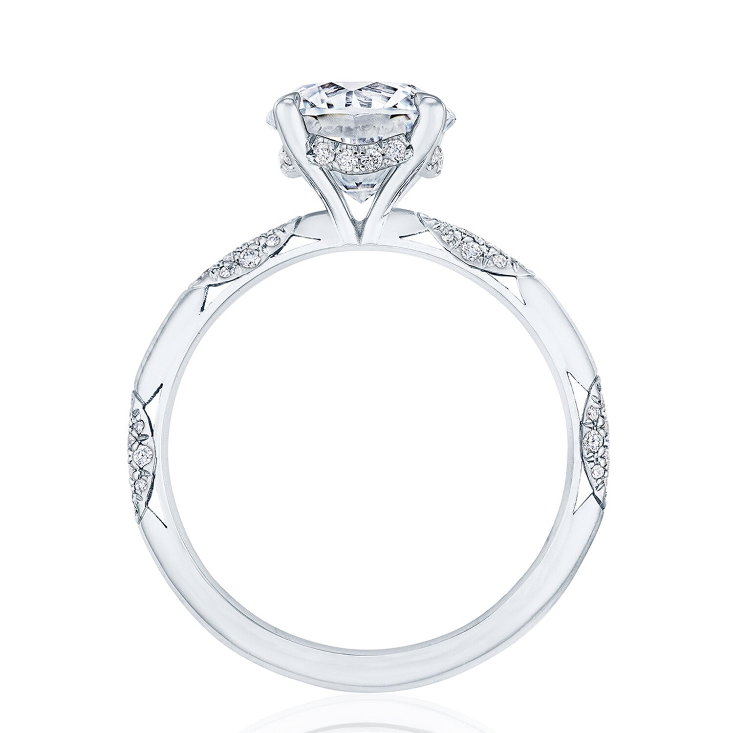 18 Karat White Gold 0.17ctw Diamond Tacori French Pave Set Semi- Mount Engagement Ring Size 6.5. Serial No. 556095 Vendor ID: 159/Vendor Style #: HT 2582 RD 7 W