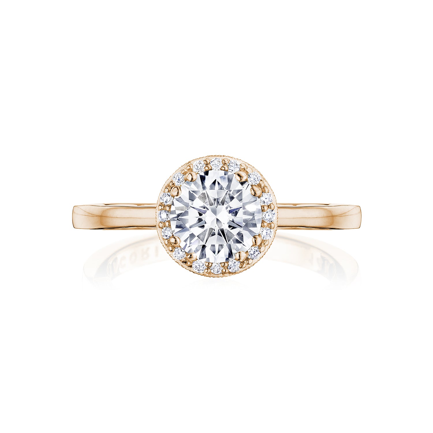 14 Karat Rose Gold 0.15ctw Diamond Tacori Round Halo Polished Semi- Mount Engagement Ring Size 6.5. Serial No. 562661 Vendor ID: 159/Vendor Style #: P 101 RD 6.5 FPK