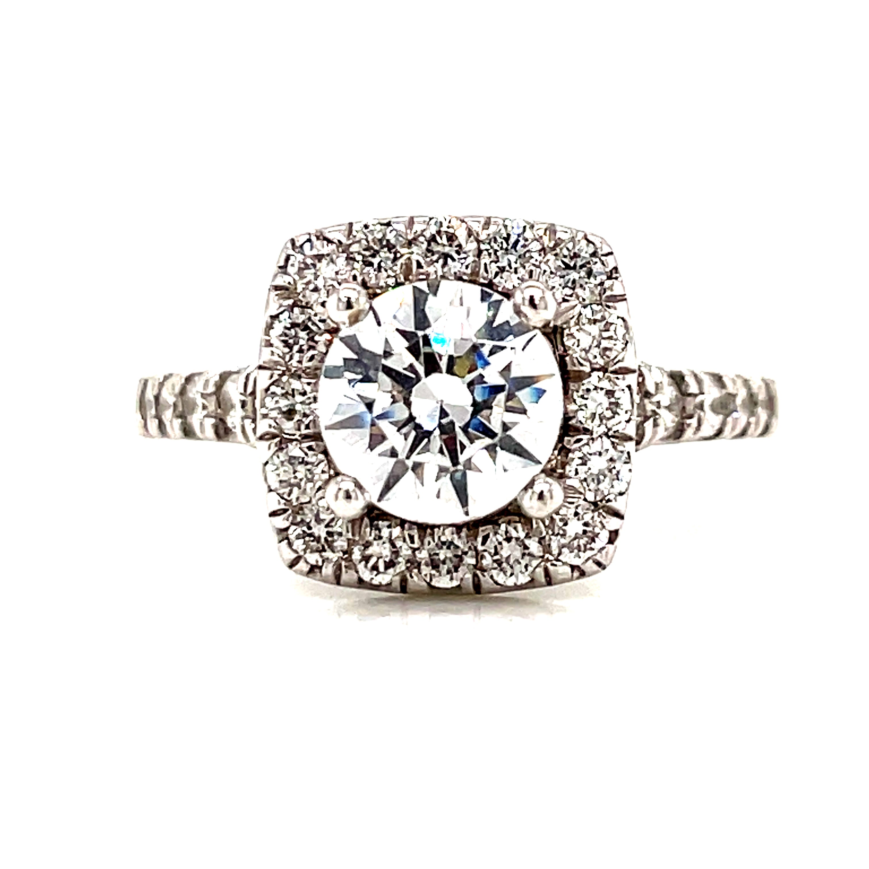 14 Karat White Gold 0.65CTW round brilliant diamond halo semi-mount Size 5 1/4.