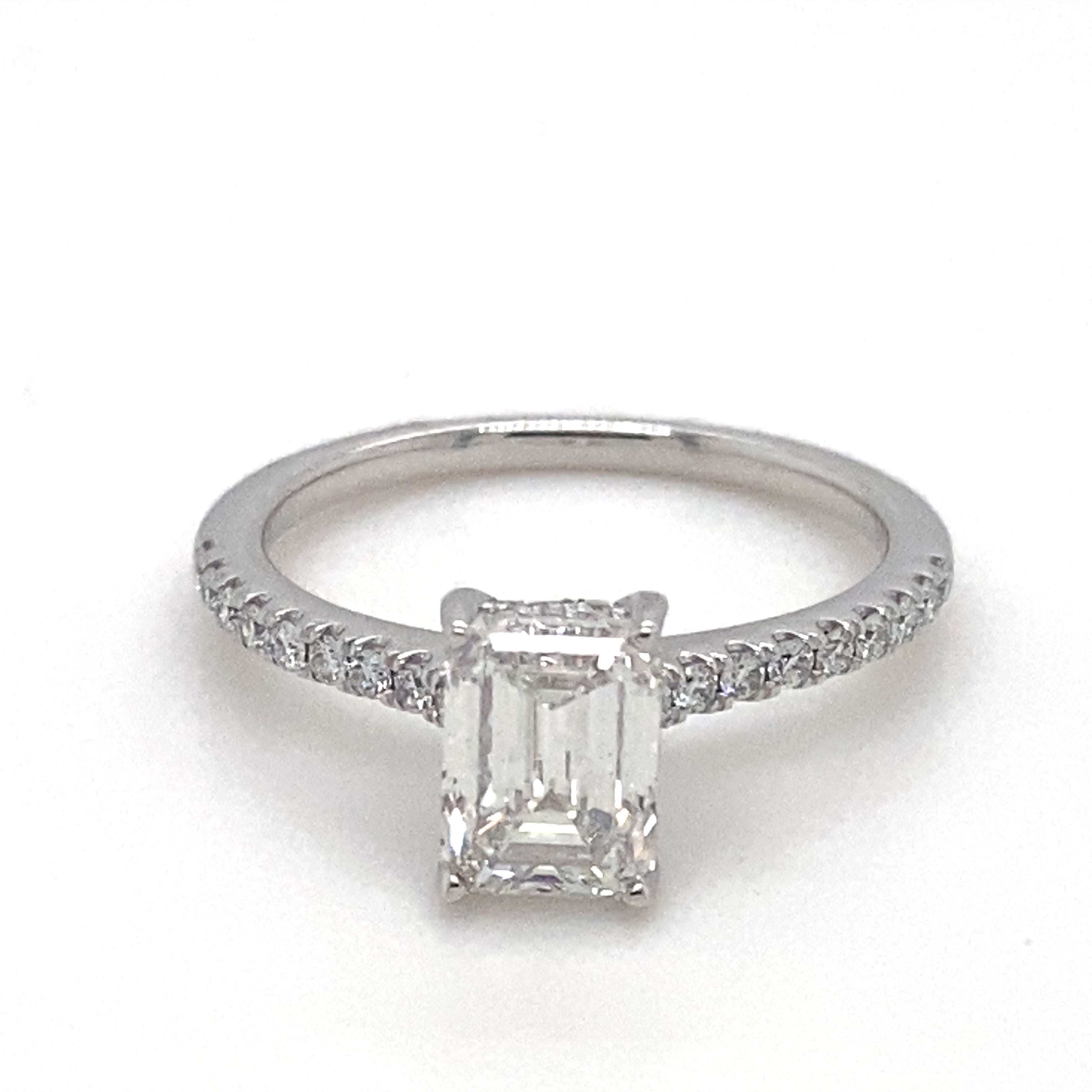 LAB GROWN COMPLETE: 14 Karat White Gold Laboratory Grown Diamond 1.79 ctw Mounting Engagement Ring Set Size 7 Center Stone: Laboratory Grown Diamond 1.53 Carat Emerald "G" in color and "VS2" in clarity. Measurements: 7.55 x 5.47 x 3.79 mm Report: IGI International Gemological Institute LG523205290 Vendor ID: 261/Vendor Style #: LGDTXR03311A-GW3