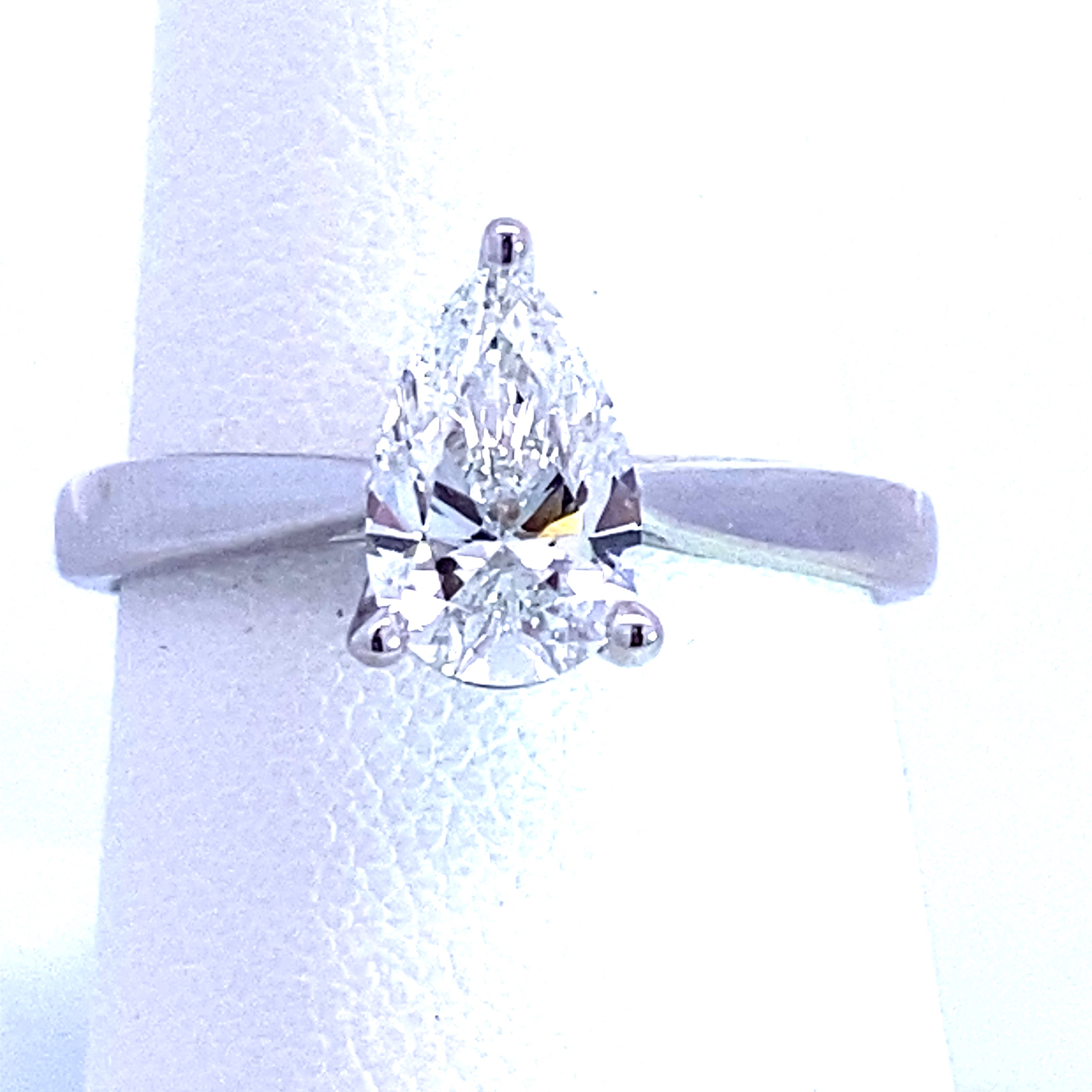 LAB GROWN COMPLETE: 14 Karat White Gold Laboratory Grown Diamond Mounting Engagement Ring Set Size 7 Center Stone: Laboratory Grown Diamond 1.06 Carat Pear "E" in color and "VS1" in clarity. Measurements: 9.03 x 5.61 x 3.52 mm Report: IGI International Gemological Institute LG574340230 Vendor ID: 261/Vendor Style #: LGD-JOR1031-GW3