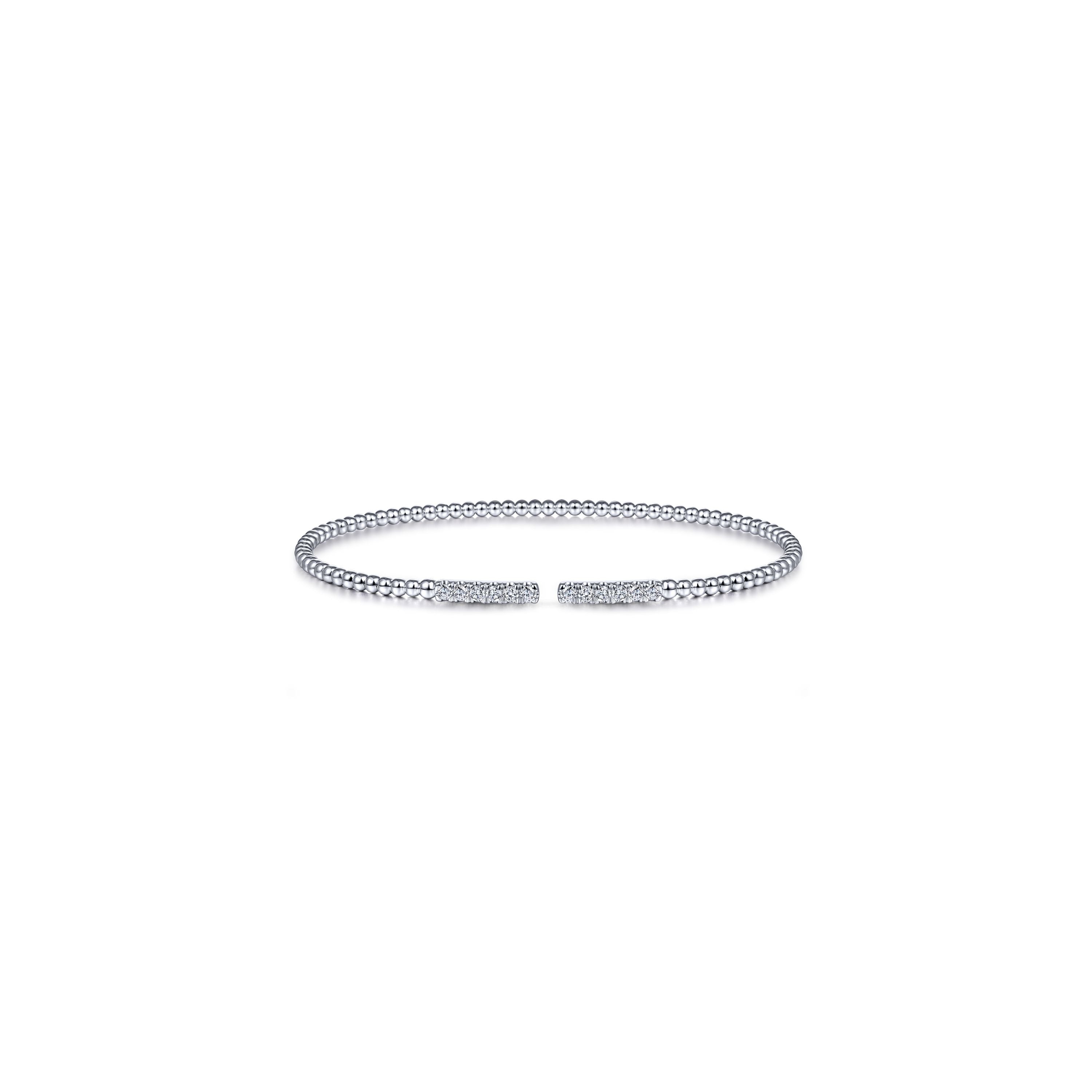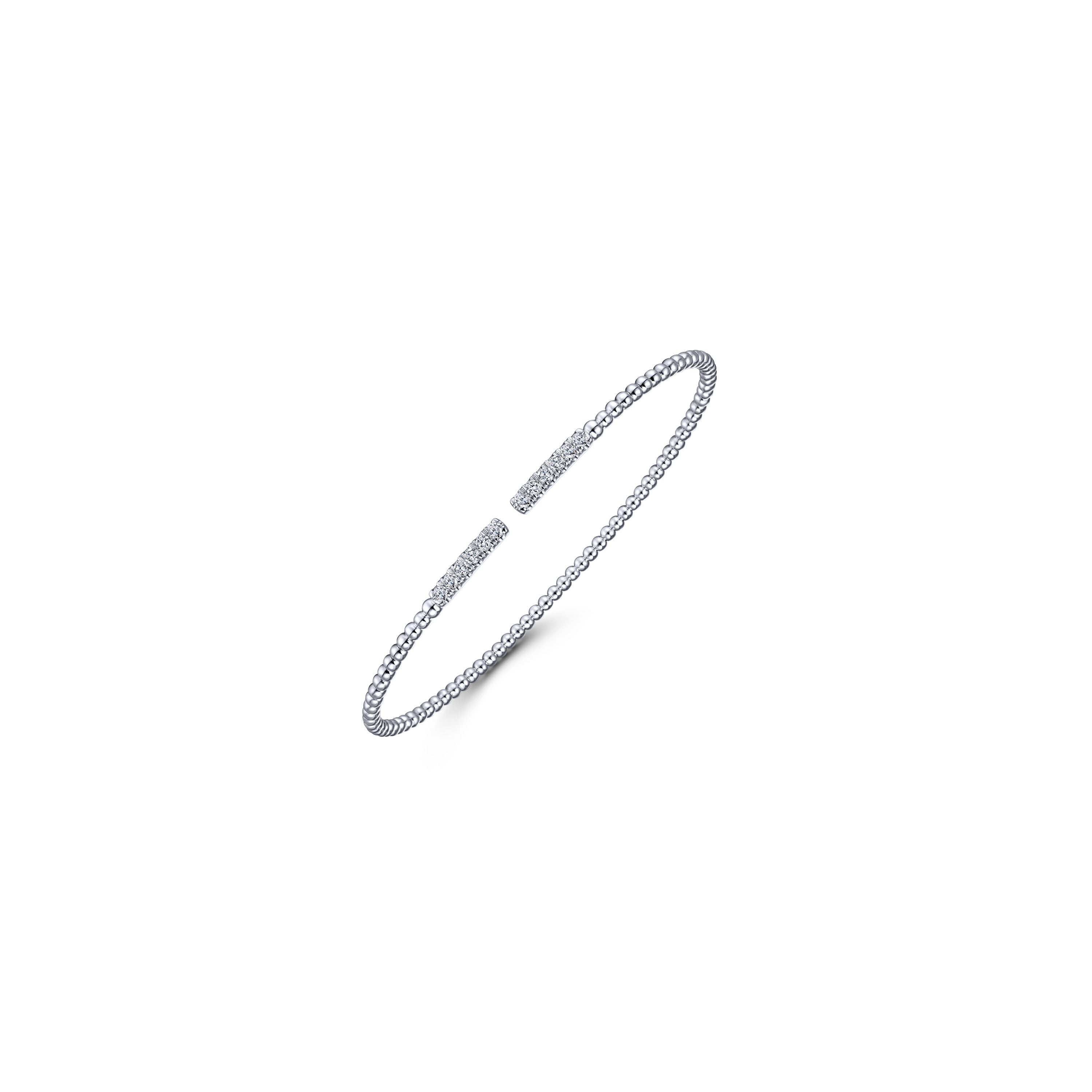 Lady's 14K White Gold Bujukan Bead Cuff Bracelet with 0.29ctw Diamond Pave Bars Serial No. S1322947