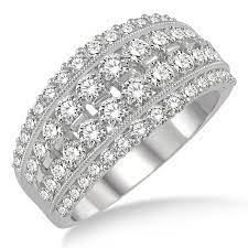 COUTURE: 18K White Gold 4 Row 2.0ctw Diamond Fashion Band Finger Size 7