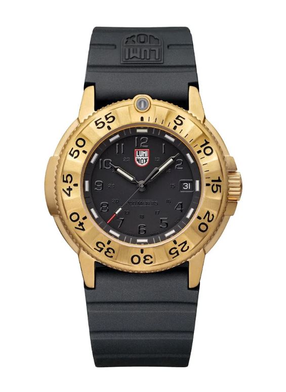 LUMINOX: Navy SEAL Foundation 3220 Black & Gold Military Dive Watch, 43 mm In honor of the Navy SEAL Foundation’s 25th Anniversary, Luminox proudly introduces the Navy SEAL Foundation 3220 Series Gold Color Edition. This bold timepiece features a 43mm gold-tone IP stainless steel case and bezel, inspired by the iconic SEAL Trident. The blackout dial adds contrast and sophistication, while yellow and ice blue Luminox Light Technology ensures unmatched visibility in any condition for up to 25 years. Built for everyday adventures with 200-meter water resistance and a sapphire crystal, this Swiss Made watch is as durable as it is striking. Whether commemorating a milestone or recognizing a legacy of service, this edition is a powerful statement of commitment, strength, and honor.