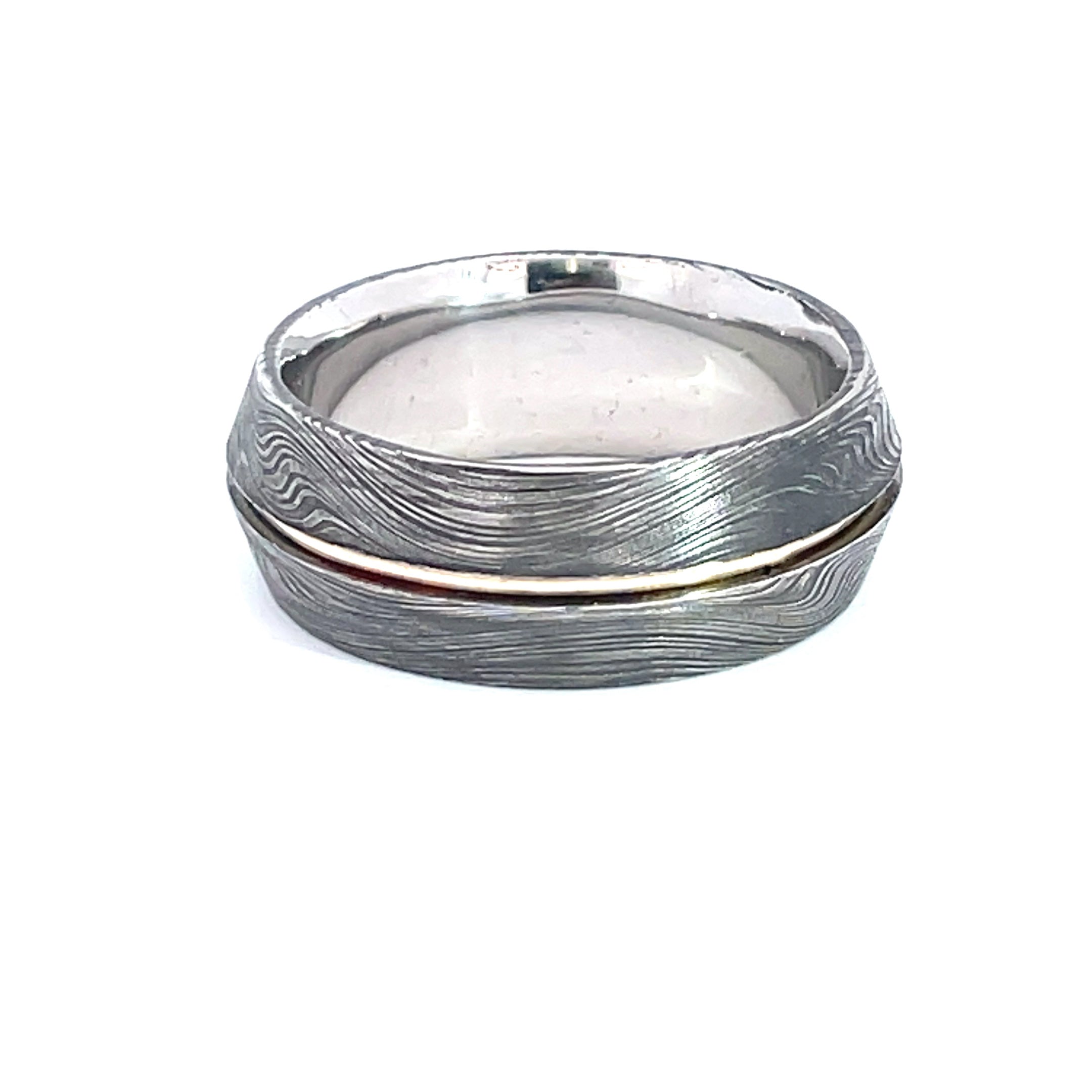 Men's Damascus Steel and 18K Yellow Gold Inlay with Black Oxide Exterior 9mm Size 11 Vesuvius Vendor ID: 453/Vendor Style #: DS-VESUVIUS