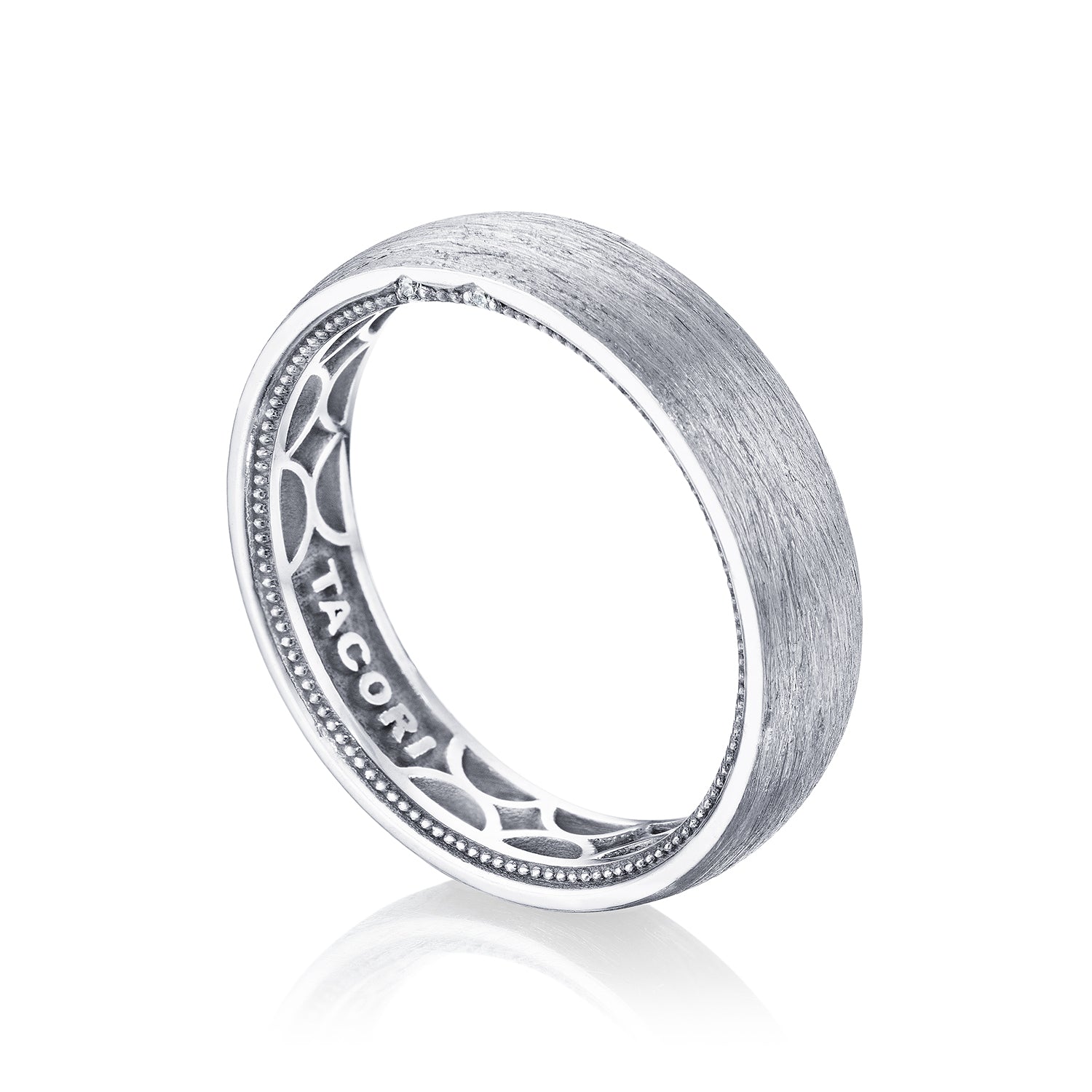 TACORI 14 Karat White Gold 0.01 Carat Total Diamond 5.5Mm Men's Wedding Band, Brush Finish. Finger Size 10.5 Serial No. 524689 159 / P600-5.5FWB