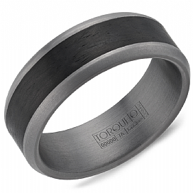 TORQUE: Tantalum and Forged Carbon Fiber Black and Grey Forged Carbon FIber Top and Sandpaper Edges Finger Size 10