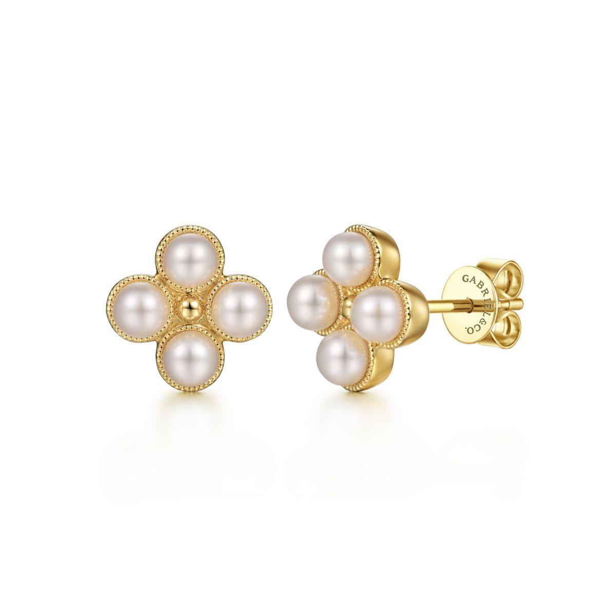 14K Yellow Gold 0.42ctw Pearl Bujukan Stud Earrings "Bujukan Collection" Serial #S1385060