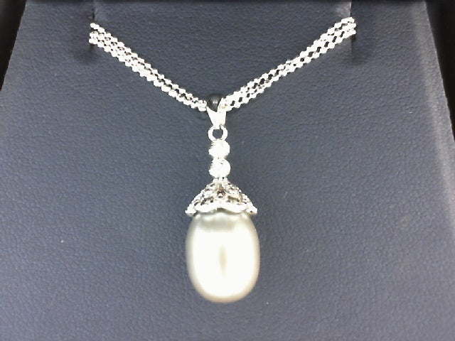 9MM GREY FRESHWATER CULTURED PEARL PENDANT ON AN 18" LONG, TRIPLE STRAND, STERLING SILVER CHAIN WITH 3-INCH EXTENDER. 50 / 649091/FW18-3S GREY