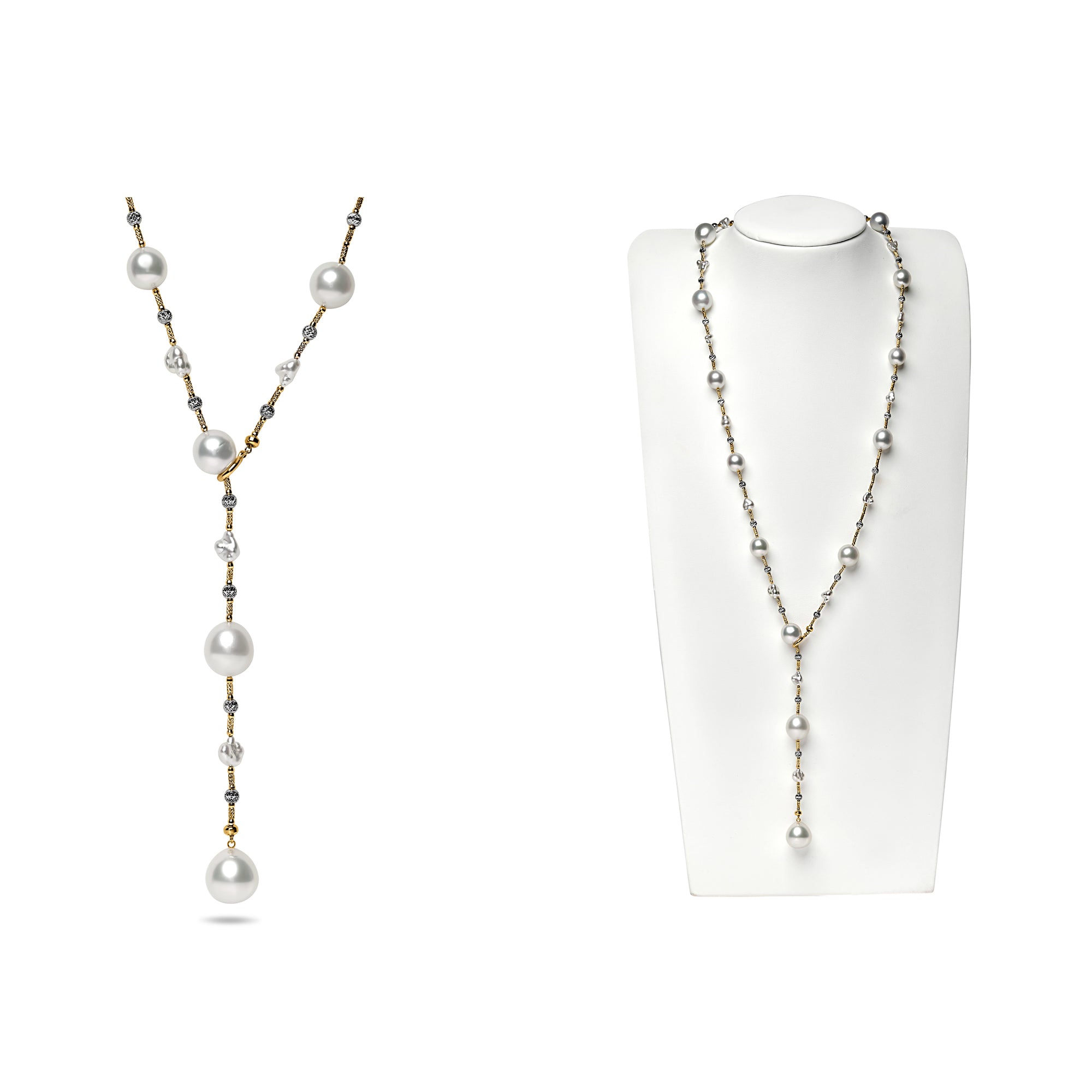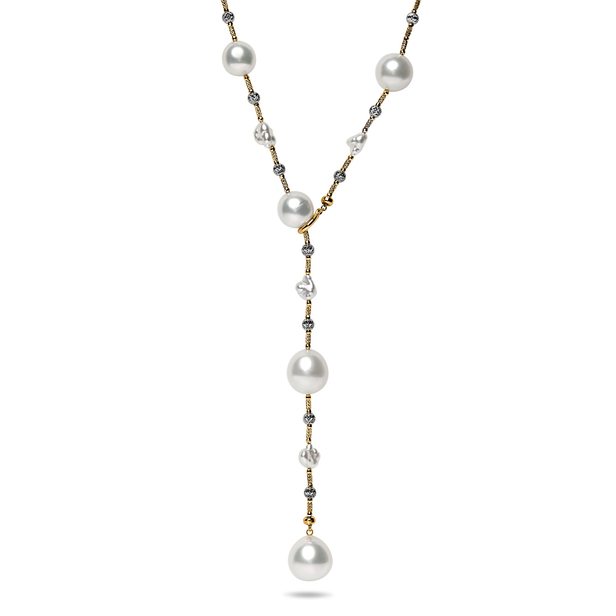 Lady's 18K Yellow Gold and White Gold 11mm Pearl Lariat Strand 32" Length