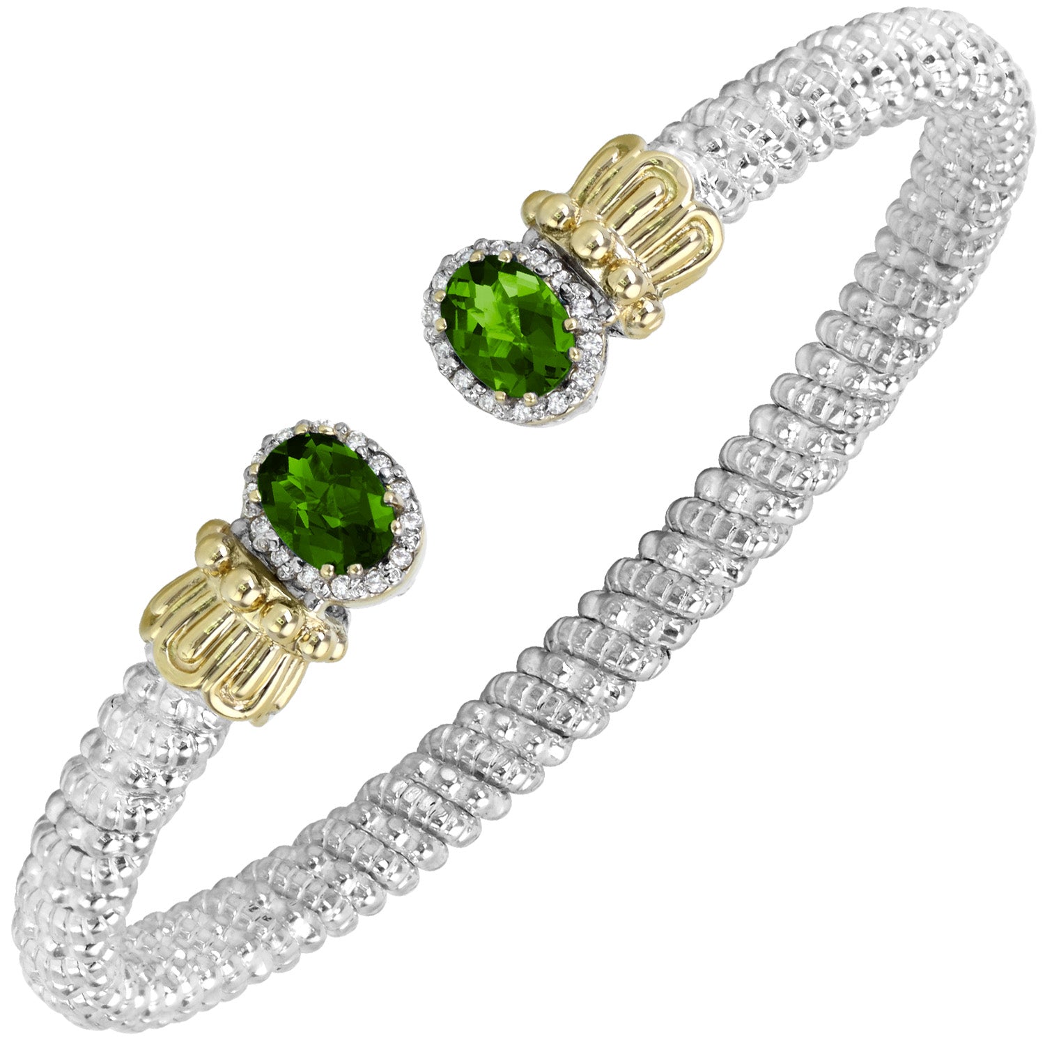 Sterling Silver and 14K Yellow Gold 0.14ctw Diamond and Chrome Diopside-2 (7x5 Oval) 4mm Open Bracelet