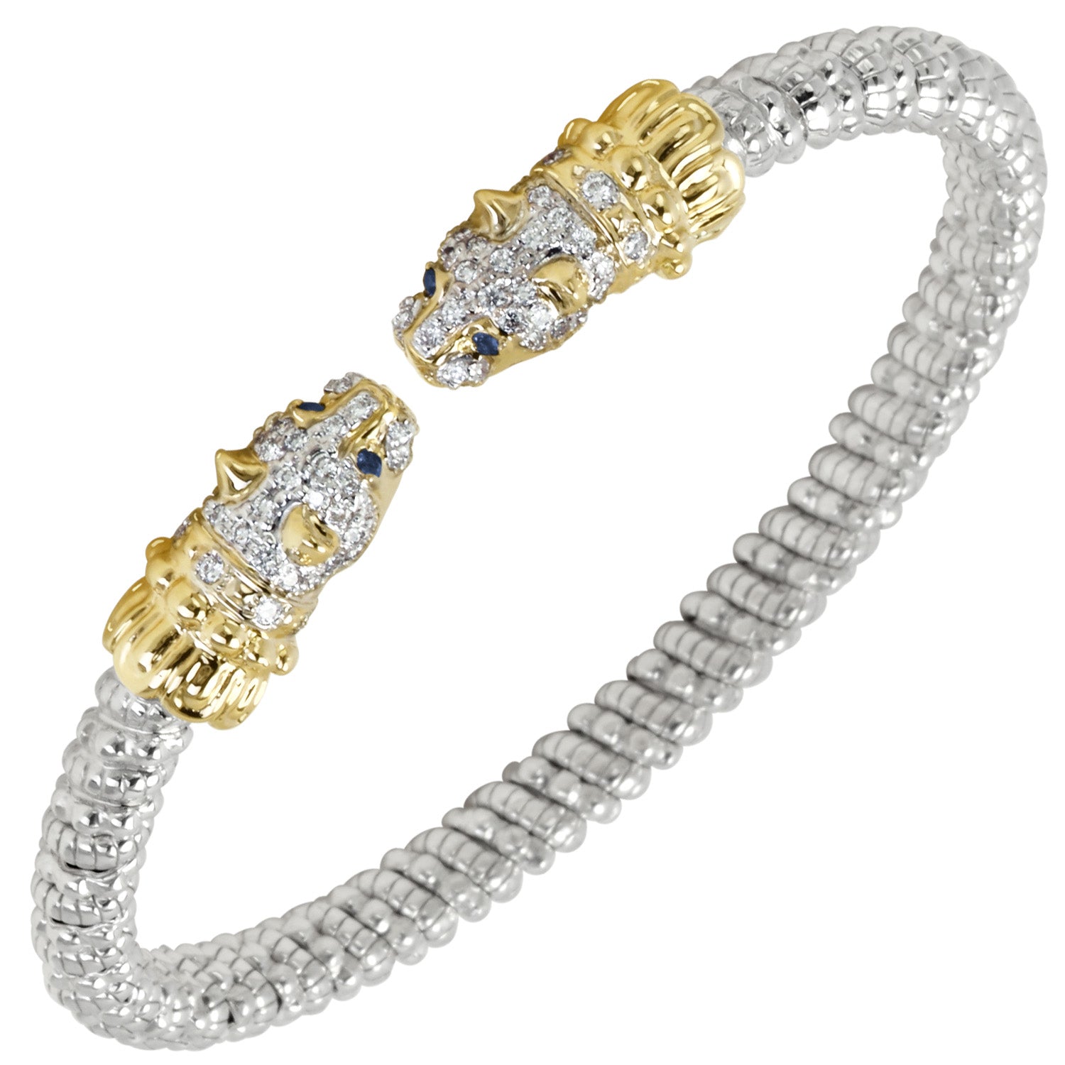 Sterling Silver and 14K Yellow Gold 0.65ctw Diamond 4mm blue sapphire open VAHAN bracelet. 158/22782DBSA04