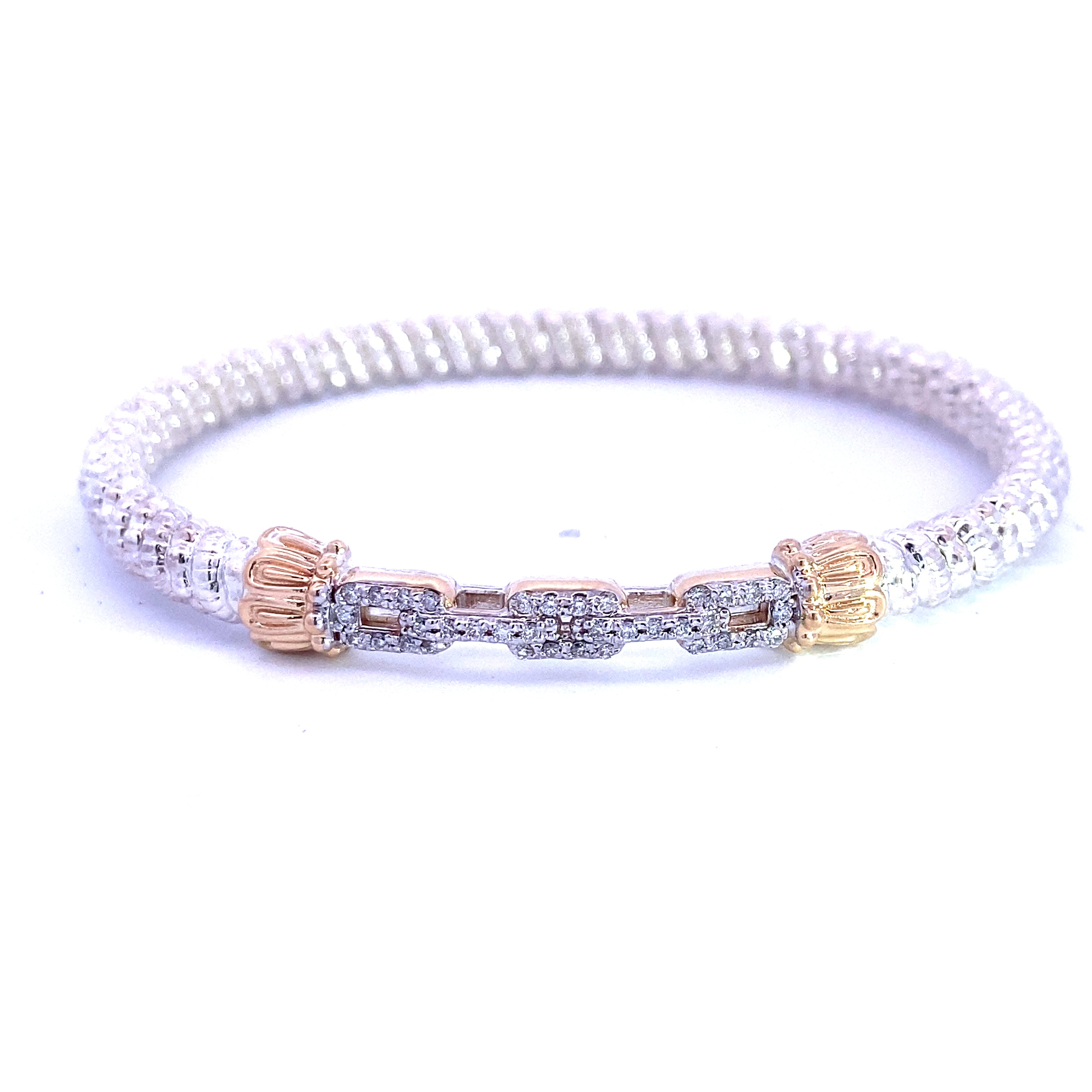 Sterling Silver and 14K Yellow Gold 0.27ctw Diamond 4mm Closed VAHAN Bracelet