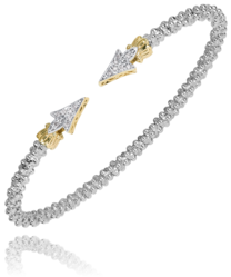 Sterling Silver and 14K Yellow Gold 0.08ctw Diamond 2mm Open Vahan Bracelet