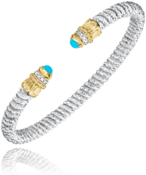 Sterling Silver and 14K Yellow Gold 0.08ctw Diamond and Turquoise 6mm Open Vahan Bracelet