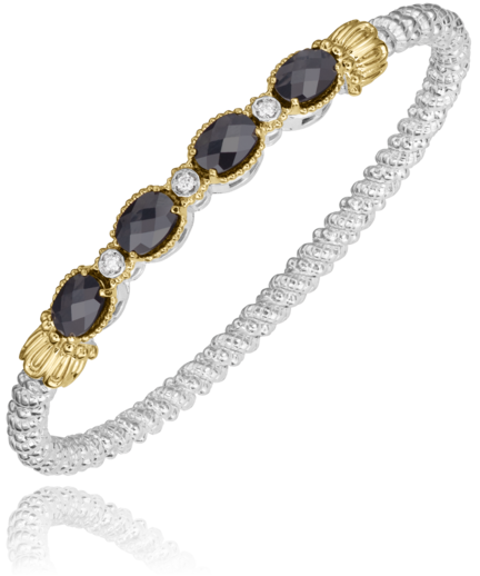 Sterling Silver & 14KT YG 0.06ctw diamond & 7x5 Oval Black Onyx 4mm VAHAN Closed Bracelet