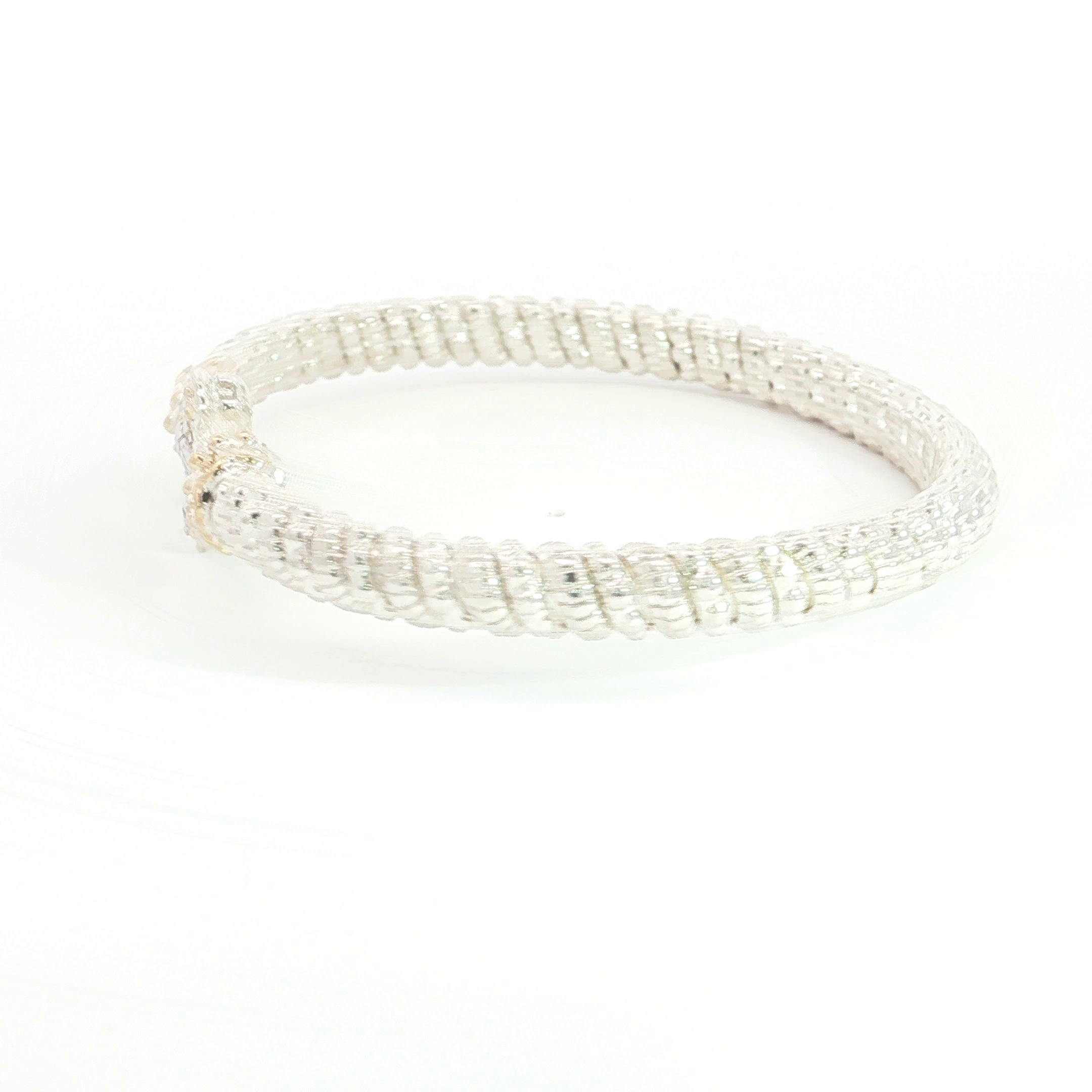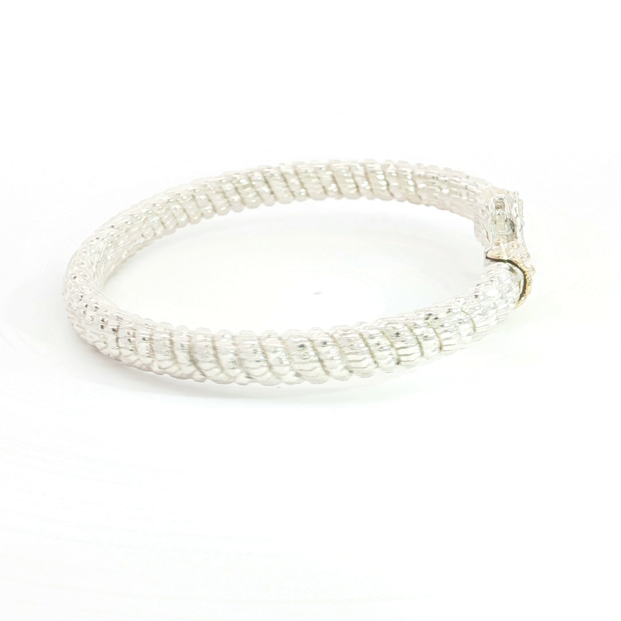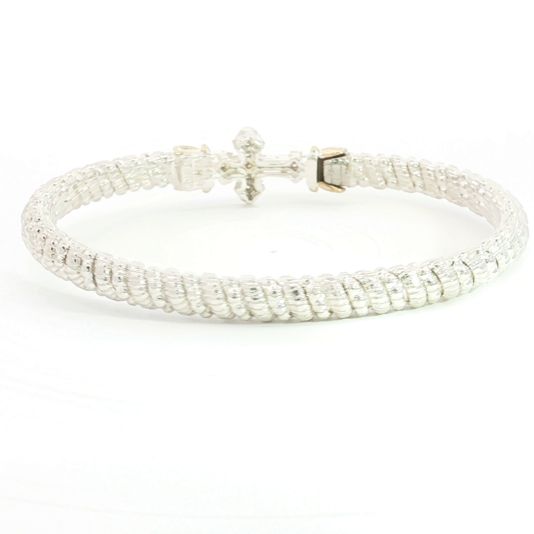 Sterling Silver & 14kt YG0.10ctw Diamond Cross 4mm VAHAN Bangle Bracelet