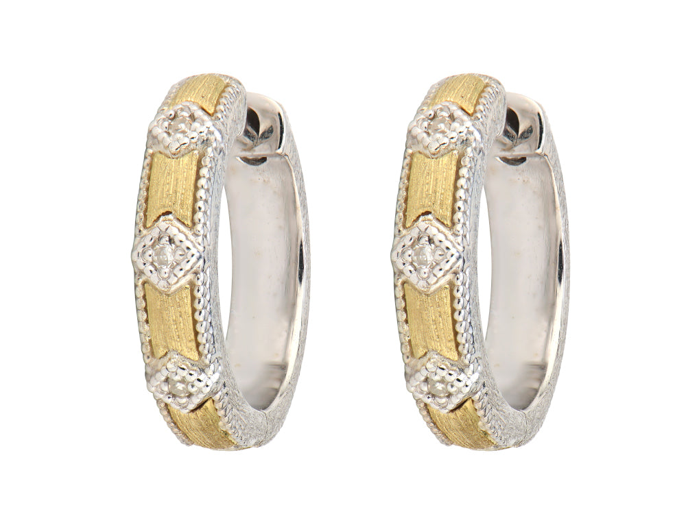 18kt yellow gold & sterling silver diamond hoop Jude Frances earrings. 170/EH10F18-WD-YB-S