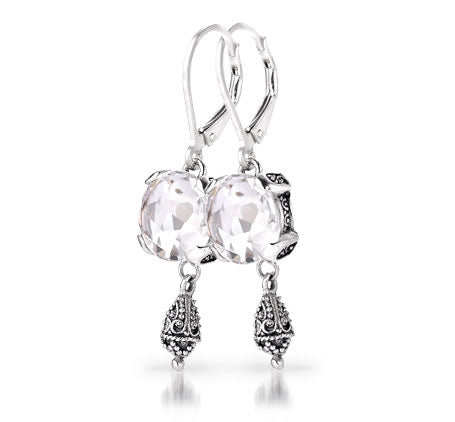 SS and 10mm round white topaz dangle earrings. Sara Blaine Aegean Scroll collection 157 / 3426WT