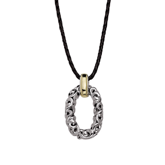 IVY LINK TWO TONE NECKLACE The Missing Link - Casual and stylish, my link collection is perfect for your favorite everyday outfit. Whether you are going to dinner or spending the day shopping, your sleek modern style is sure to be admired by all.e Sterling Silver 925 and 18k Yellow Gold, 47x26mm Pendant, 17 inch Leather Cord