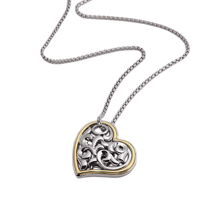 IVY TWO TONE HEART NECKLACE A Touch of Gold - My beautiful Ivy design, delicately wrapped in warm 18k yellow gold is a timeless masterpiece and an essential addition to any woman’s collection. Sterling Silver and 18k Yellow Gold, 30x30 Pendant, 20 inch Sterling Silver Chain